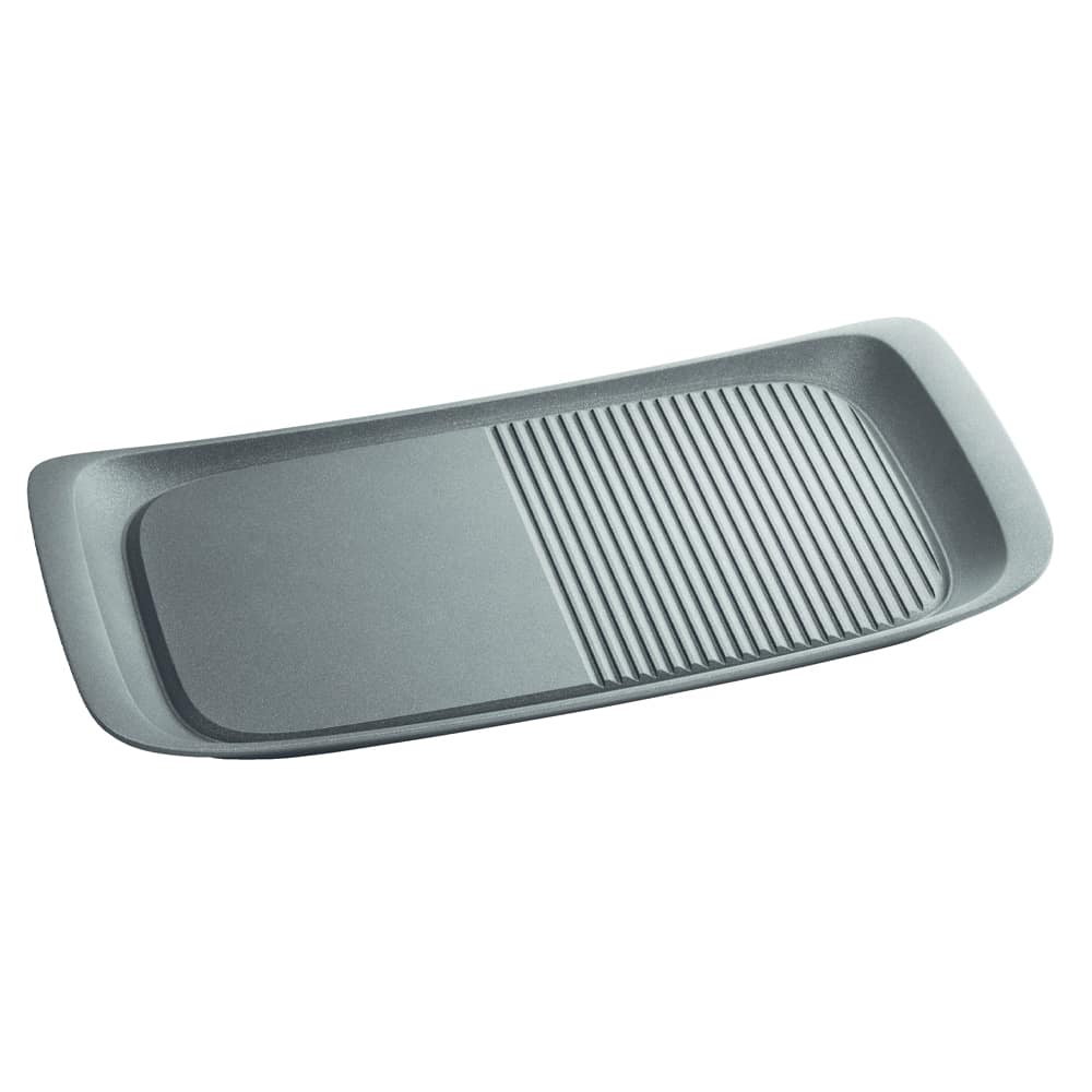 Enjoy an outdoor grill taste all year round with the Maxi Sense Plancha Grill. The precise heat control of induction gives you steaks grilled to perfection, asparagus with the right crunch and seared scallops with that perfect crisp crust and tender inside. It has a thick aluminum base and non-stick easy to clean surface which is oven-safe up to 200°C. Only suitable for induction hobs.