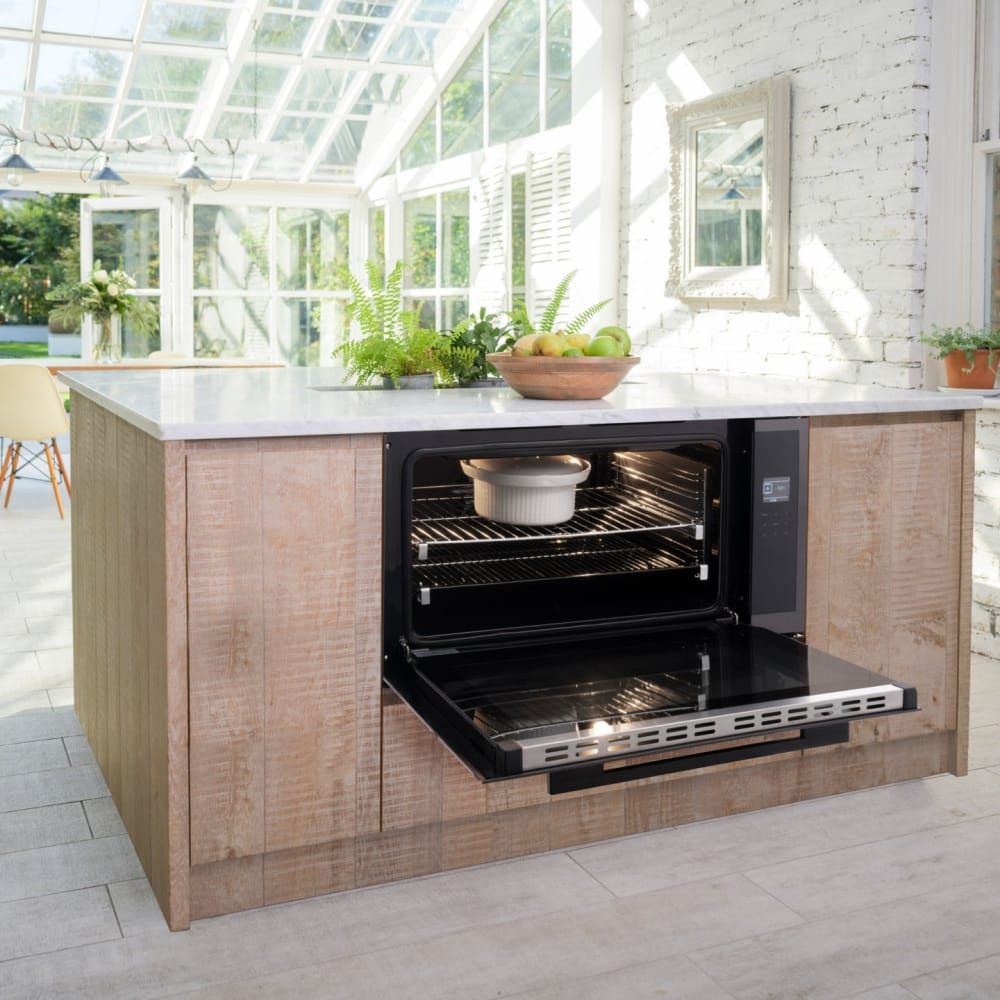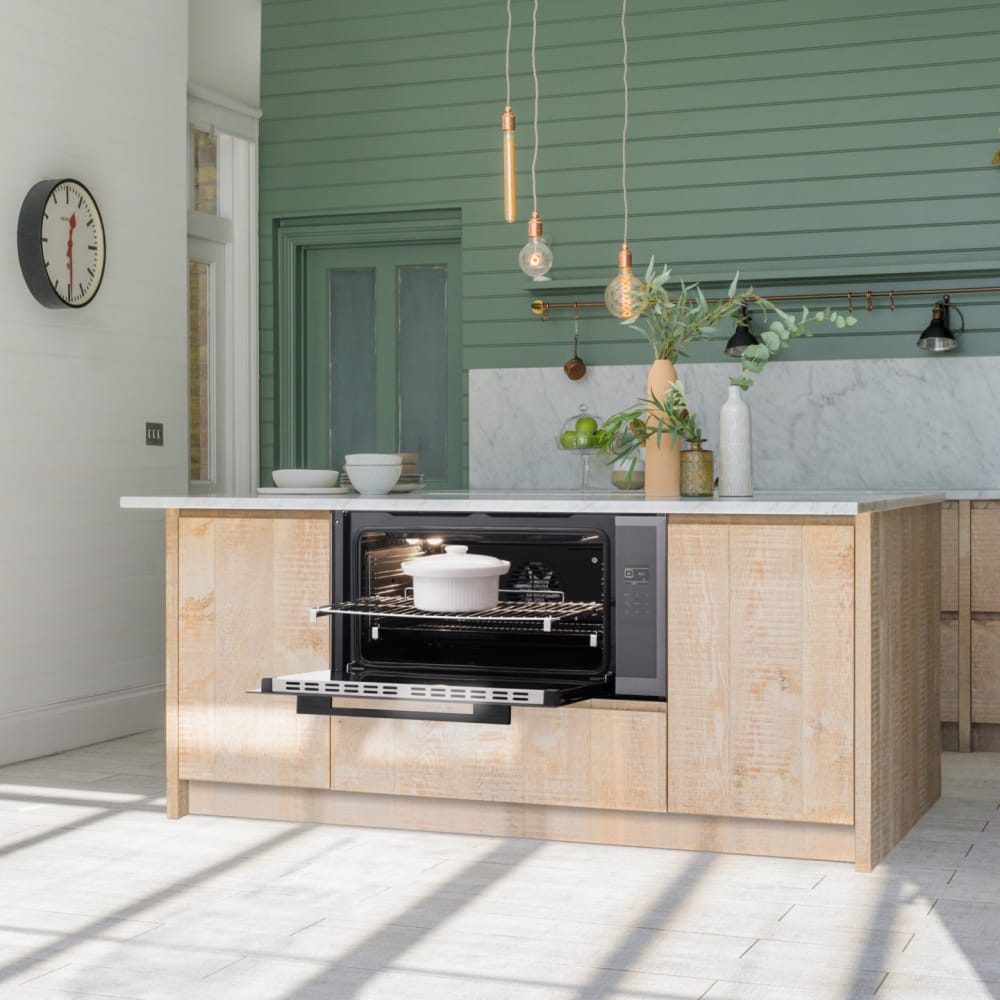 This superb 90cm wide built in electric single oven from Caple boasts 96 litres of cooking capacity and an A energy rating. It has an impressive 12 cooking functions, self-cleaning catalytic liners and a rotisserie cooking function for the perfect cooked chicken every time. It also boasts Caple’s MotionHeat+ function which allows for even cooking results and no need to preheat, which not only saves you time but energy too, therefore money. It also enables you to cook three different things without the transferring of smells and flavours. Cooking has never been made so easy! Finished in gunmetal this multifunction single oven is the perfect addition to any kitchen.