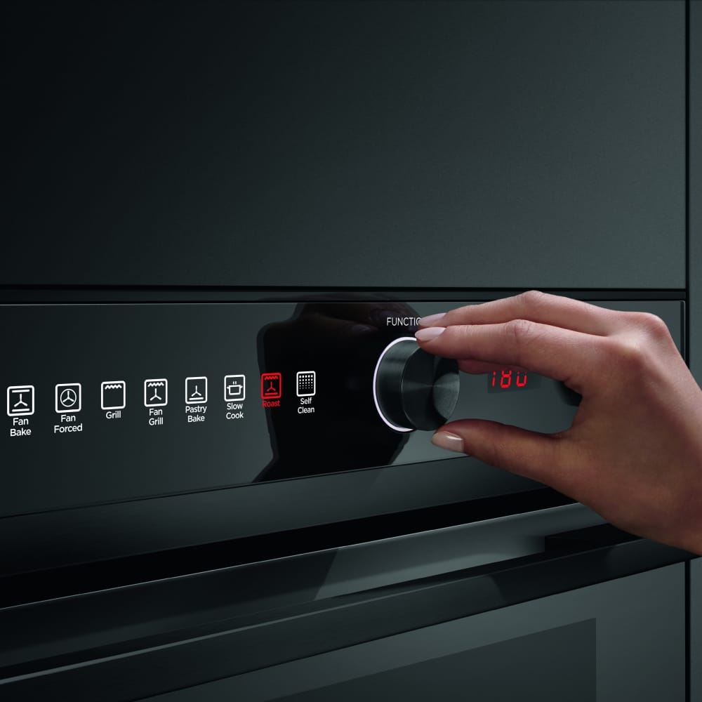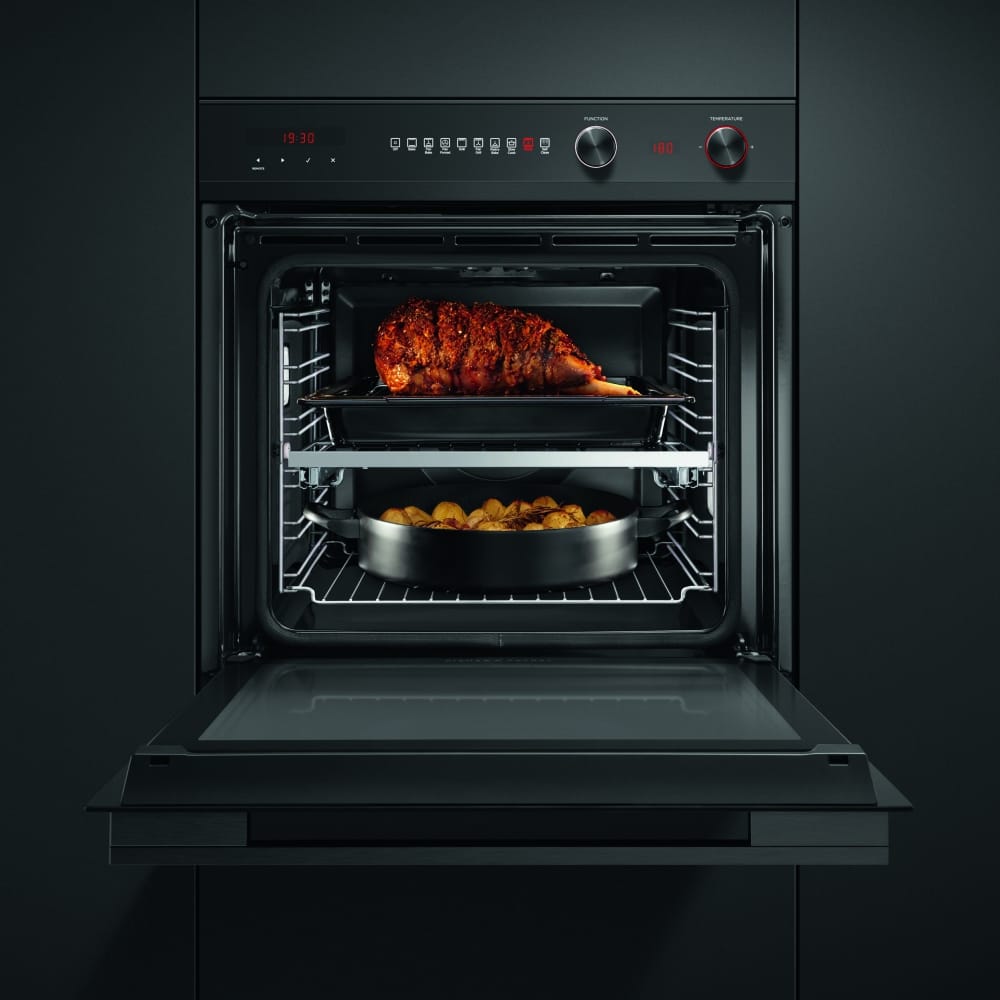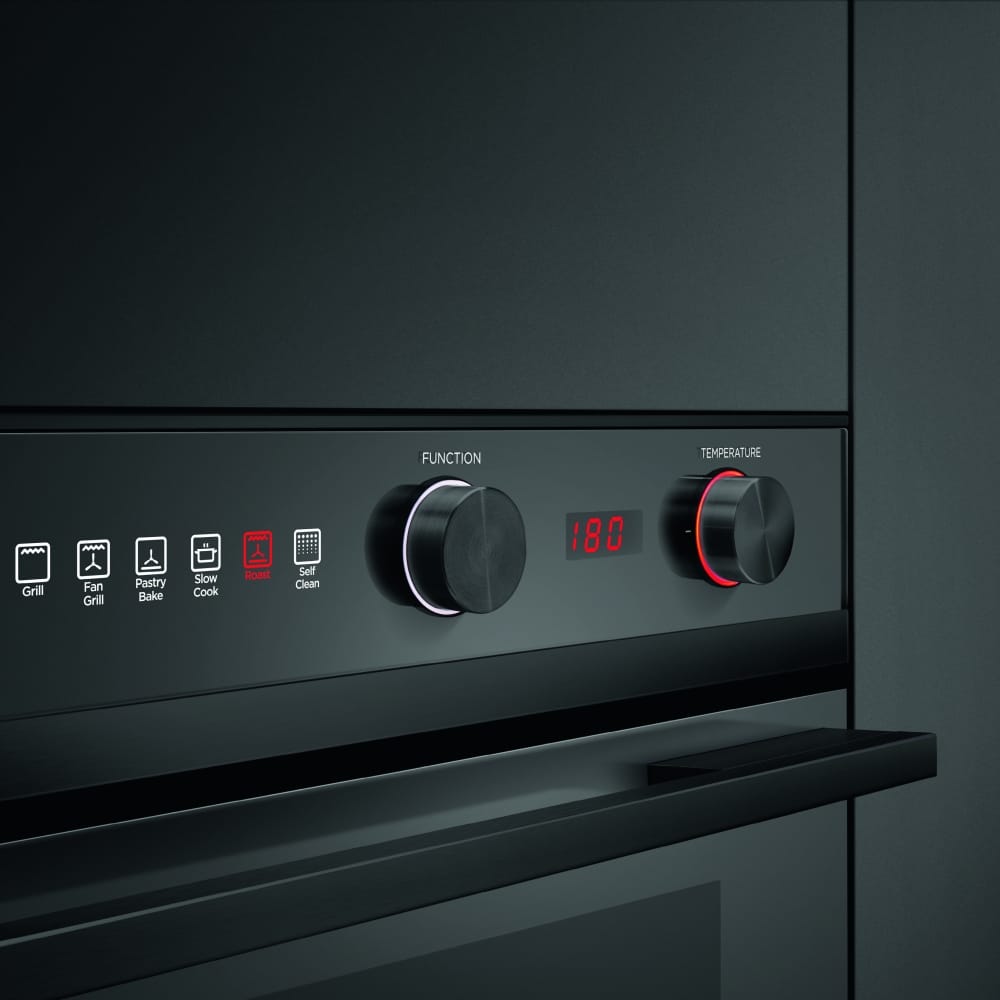 This superb black steel single oven from Fisher & Paykel is perfect for busy homes, thanks to the roomy 85 litre interior and 9 functions, so you can do everything from bake to roast to grill with ease. The pyrolytic cleaning function cuts down on maintenance, as the oven cavity will heat up, burning away food residues so all you need to do is sweep out any ash produced. Look out for little extras like the non-tip telescopic shelf, which makes getting food out easy and safe, and Cool Touch doors for that added peace of mind.