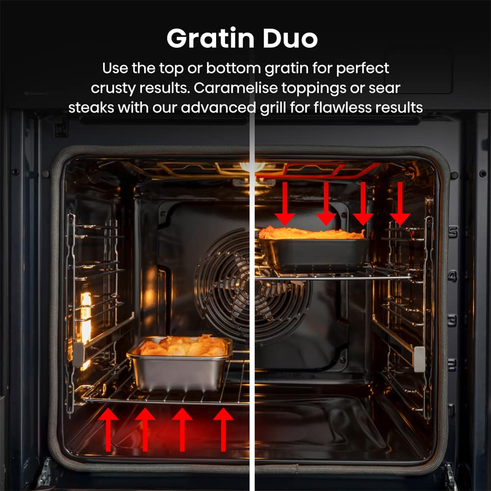 This Hisense Wi-Fi enabled built-in single oven which is equipped with a variety of programmes and features which will help you become confident in the kitchen. With an extra large 77 litre capacity, you can rustle up a sunday dinner for the whole family. Gone are the days of being stuck in the kitchen when you have guests round, as you can easily preheat the oven and check the progress of your meal remotely from your phone. Boost your culinary skills and cook with steam, using the Steam Add Pro function, allowing hot air to circulate around the interior, resulting in perfectly risen bread, pastries and croissants. Eliminate the guesswork when cooking and take full advantage of the food probe to ensure your meat is cooked exactly how you like it. When it’s time to give your oven a little TLC, forget the rubber gloves and grease remover and allow the pyrolytic self-clean function to break down the interior grease and grime, leaving behind only ash to be wiped away.