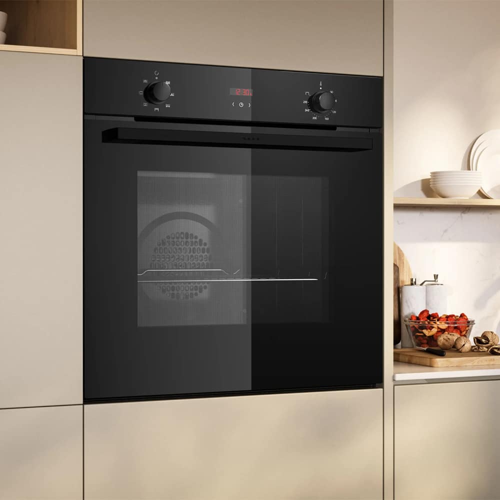 This built in electric single oven from Neff is a fantastic buy. Featuring 71 litres of space and 5 cooking functions you’ll have all your cooking needs sorted with this model. Circotherm technology means you can cook, roast and bake completely different dishes on all levels without the intermingling of smells and flavours. Also, the desired temperature is achieved quicker and more evenly therefore saving time and energy! Finished in black the B1DCC0AK3B looks great and can be installed under your worktop or in a tall housing unit.