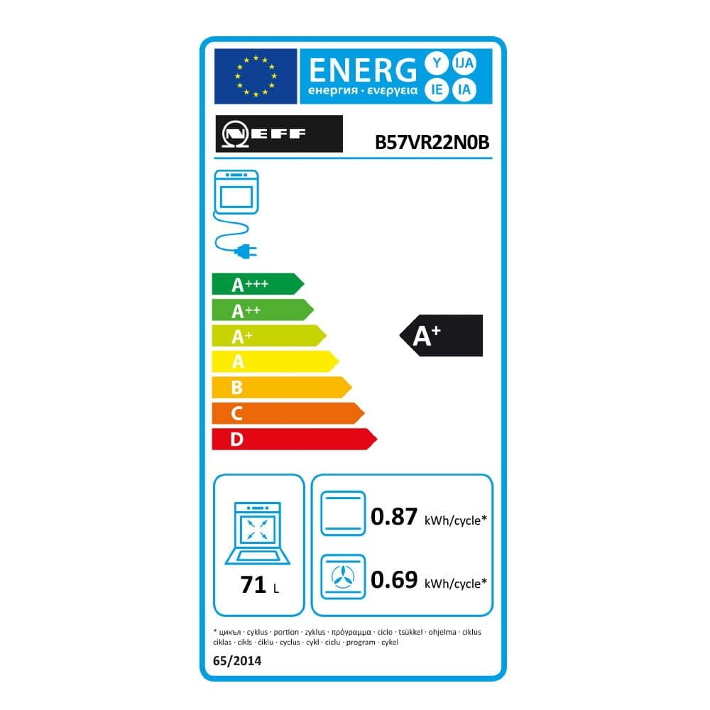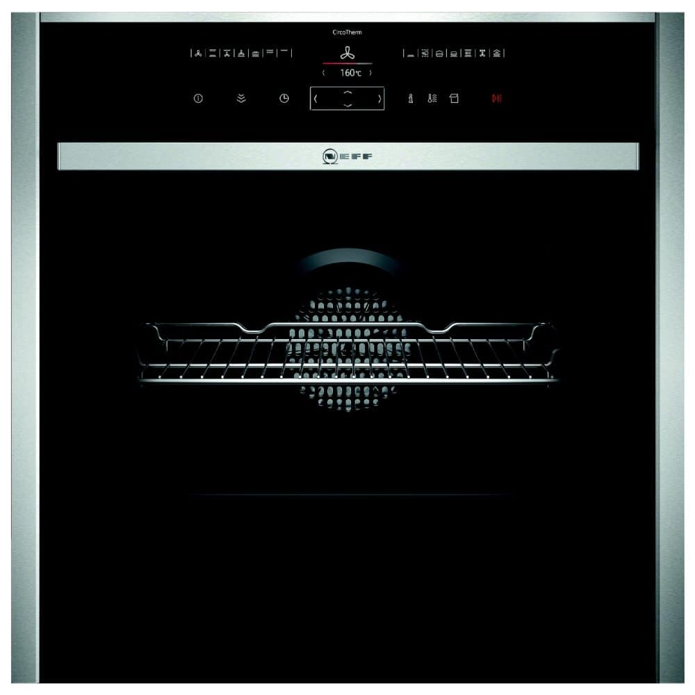 This outstanding Neff Slide & Hide Pyrolytic VarioSteam single oven has a 71 litre capacity, 12 cooking functions and VarioSteam, which gives your dishes the perfect amount of moisture by adding steam at three intensity levels. Ideal for roasting, baking or just heating up, this oven is perfect for all types of cooks. Neff’s unique Slide&Hide disappearing door retracts smoothly under the oven cavity, allowing plenty of room for manoeuvring and easier access into the oven. It also features CircoTherm technology for even cooking at all levels with no transfer of flavours or smells. You don’t have to worry about cleaning it after all those culinary creations either because it is self cleaning, so it really is cook and go. There is lovely LED lighting inside to give you a perfect view of your cooking. Controlling all the functions couldn’t be easier with a state of the art TFT touch control panel. You will feel well and truly spoilt by Neff with this fantastic oven.