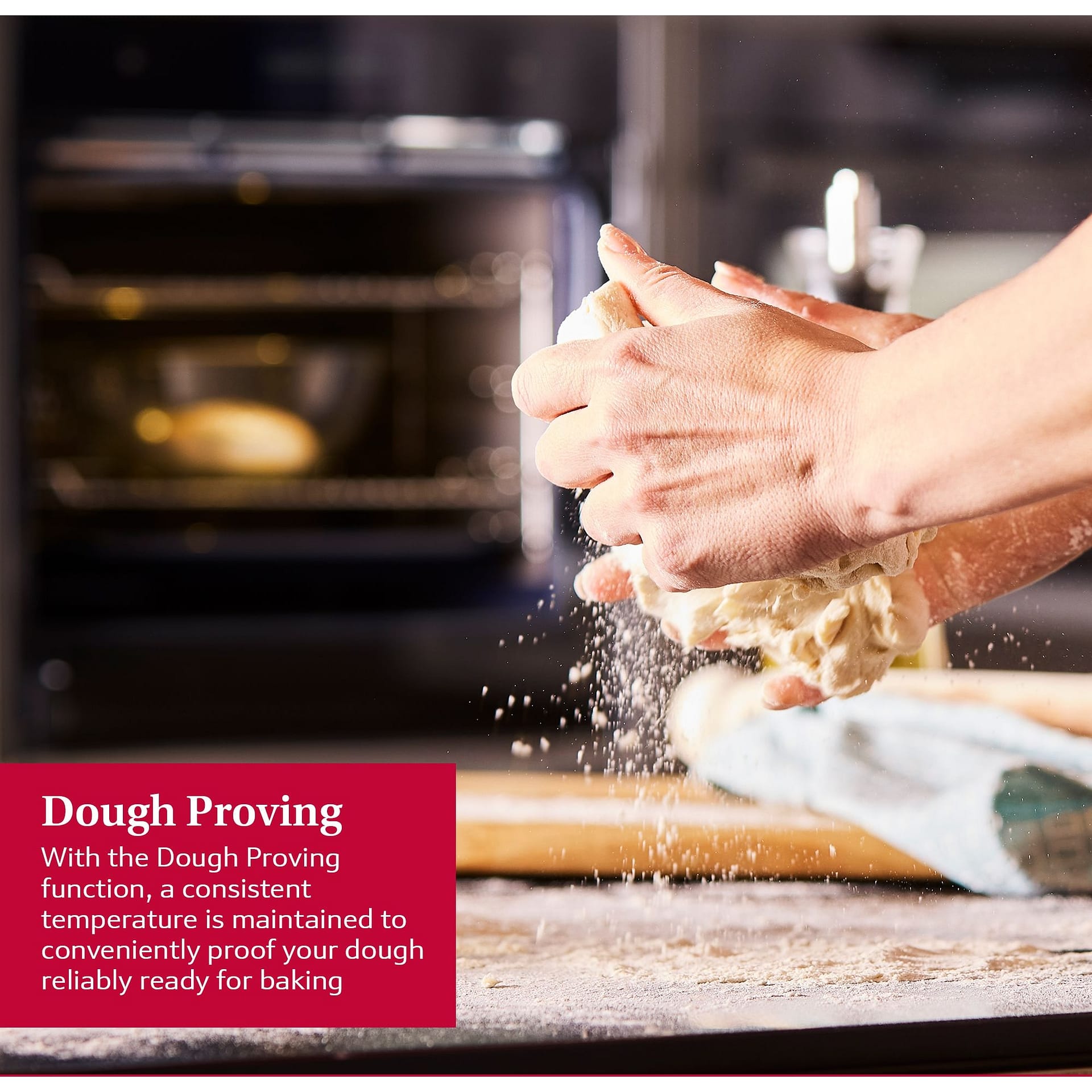 Cooking functions: Hot air, conventional heat, conventional heat gentle, bread baking, bottom heat, full width grill, half width grill, low temperature cooking, hot air gentle, dough proving, pizza, hot air grilling, air fry