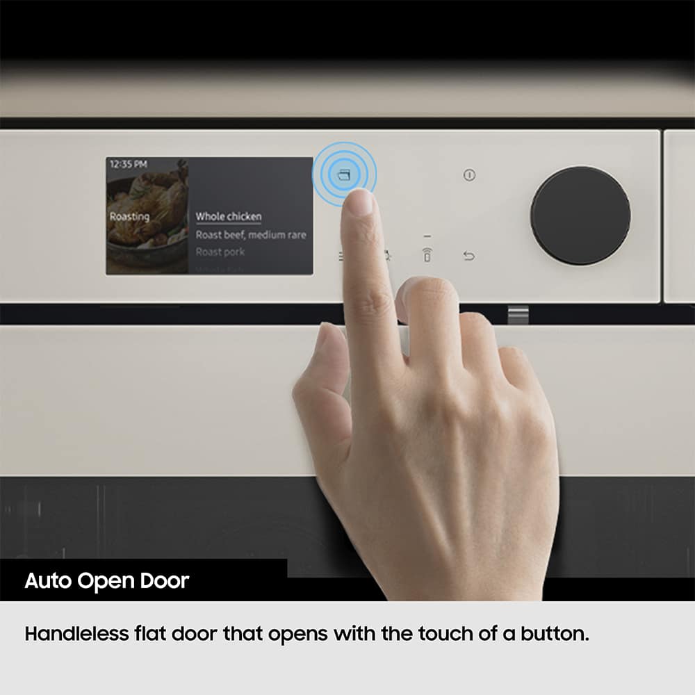 Cook in style with this sleek and efficient Samsung single oven. With a 76 litre net capacity this oven features a dual cooking system. Finished in black, the handleless auto open door helps the NV7B7997AAK blend in seamlessly with your kitchen. On the 4.3 inch TFT display, choose from 128 single cook autocook recipes and 20 dual cook recipes and enjoy perfectly cooked dishes every time. With a temperature range of 40°C – 250°C, there is no dish the NV7B7997AAK can’t handle! Fitted with telescopic shelves, your food slides out of the oven cavity with ease. Thanks to a built-in food probe, eliminate any worries and check the internal temperature of each dish whenever you wish. With Wi-Fi connectivity, the NV7B7997AAK opens up a whole new world of cooking opportunities. When connected to the Samsung SmartThings app, benefit from personalised recipes, weekly meal plans and updates about your appliance. Enjoy further ease of use with pyrolytic cleaning, a system that reduces grease and food residue to ash that can be wiped away with a damp cloth. With air frying and steam cooking options also on offer, get creative with your cooking with Samsung.