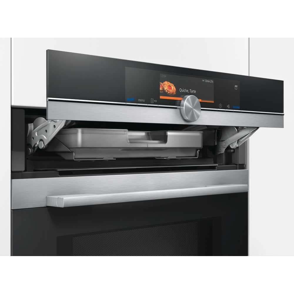 The Siemens HN678GES6B built in single oven offers you everything you could ever need in an oven. Not only does this multifunction oven have 15 normal cooking functions, it also has steam cooking (pulseSteam) and microwave options and is easy to keep clean with the activeClean pyrolytic cleaning programme. With the Home Connect function you can control and monitor your oven from your smart phone or tablet via an app with a suitable WLAN connection. Perfect for if you want to preheat your oven whilst you are out and about.