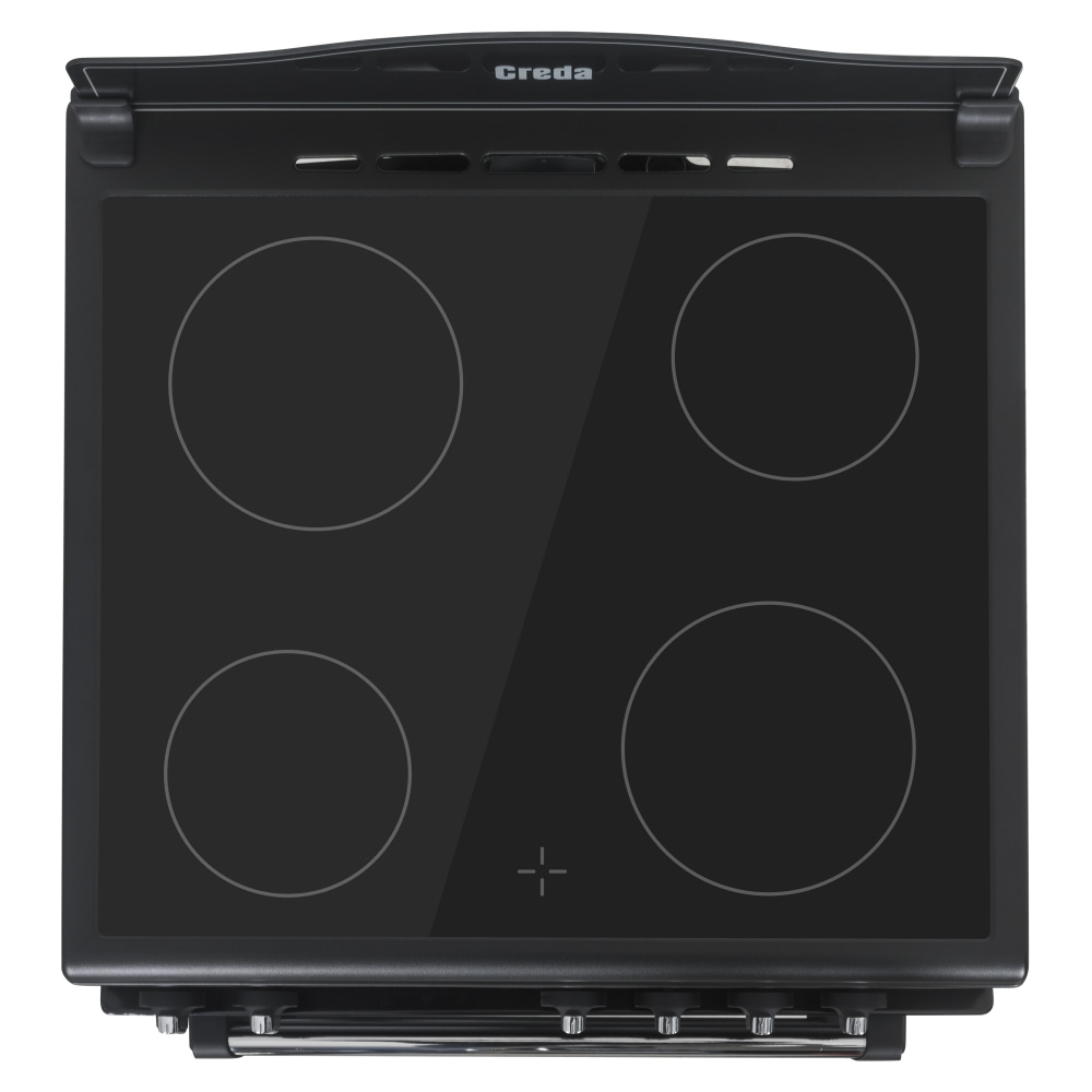 This 60cm wide freestanding Traditional electric ceramic cooker from Creda really serves up the style. An electric fan oven, a conventional electric oven with grill and a four zone ceramic hob provide options and flexibility for every meal, from warming soup to creating a roast dinner and more. It is finished in cream.