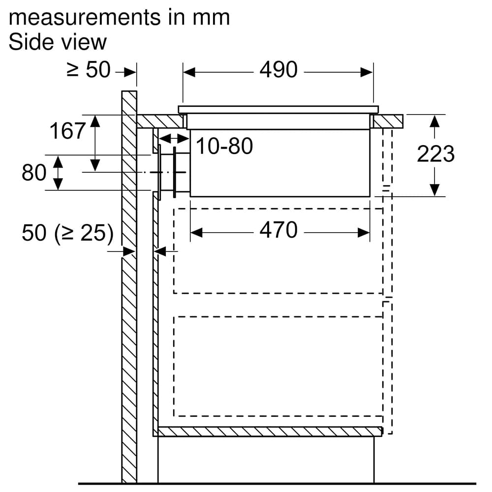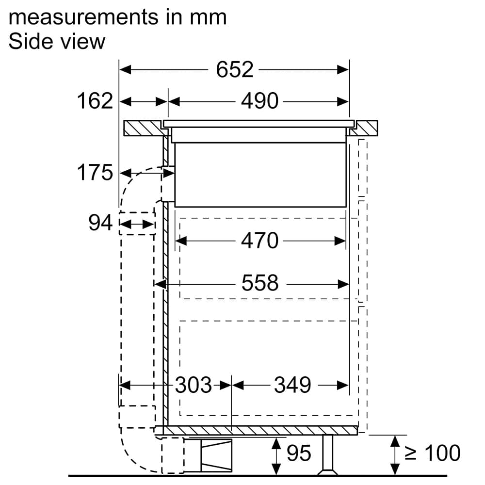 The Bosch PVQ731F15E air venting FlexInduction hob comes complete with its own integrated extraction unit. The extractor unit boasts an impressive extraction rate of up to 622m³ per hour. This model features functions like PerfectCook for precise temperature control, PerfrctFry for perfect browning of roasted foods, PerfectAir sensor for automatic control of the hood settings and DirectSelect Premium controls for direct, simple selection of the desired cooking zone, power and additional functions.