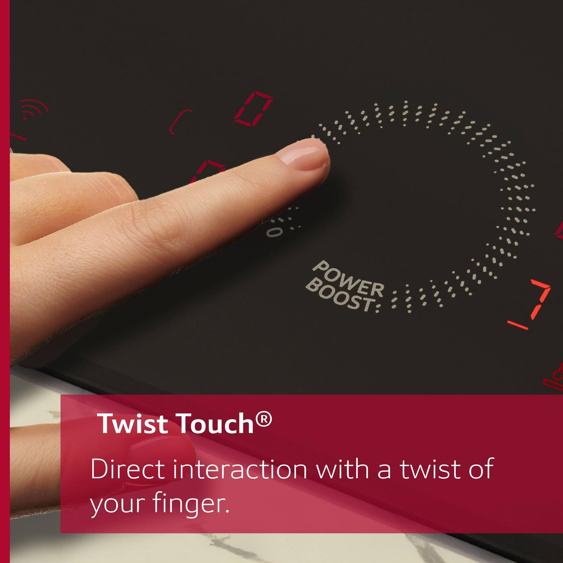The Neff V57YHQ4C0 N70 Flex Design 71cm wide air venting induction hob is a four zone flex induction hob with 17 power settings for each zone, combined with an integrated extraction unit that is suitable for ducted extraction or recirculation. The Flex Zones allow you to place your pans anywhere you want and heat them exactly where they stand. Easily control your hob with Neff’s Twist Touch controls. Finished in black glass with a choice of trim colours available it creates a stylish streamlined look and is easy to keep clean.
