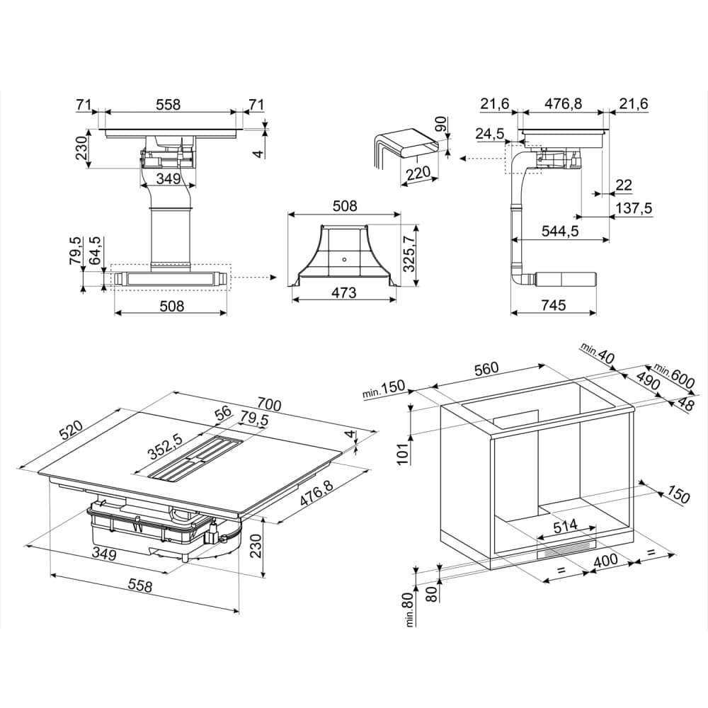 Smeg HOBD472D 70cm Air Venting Induction Hob – BLACK