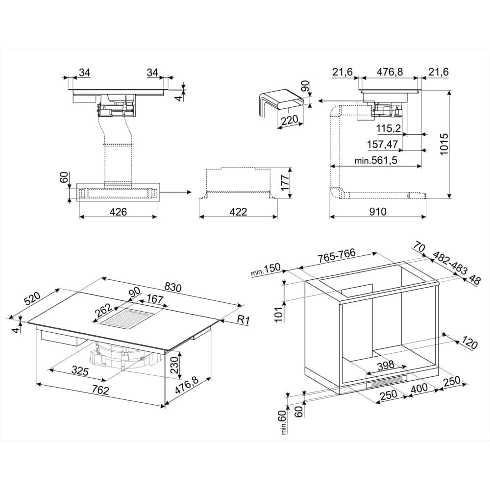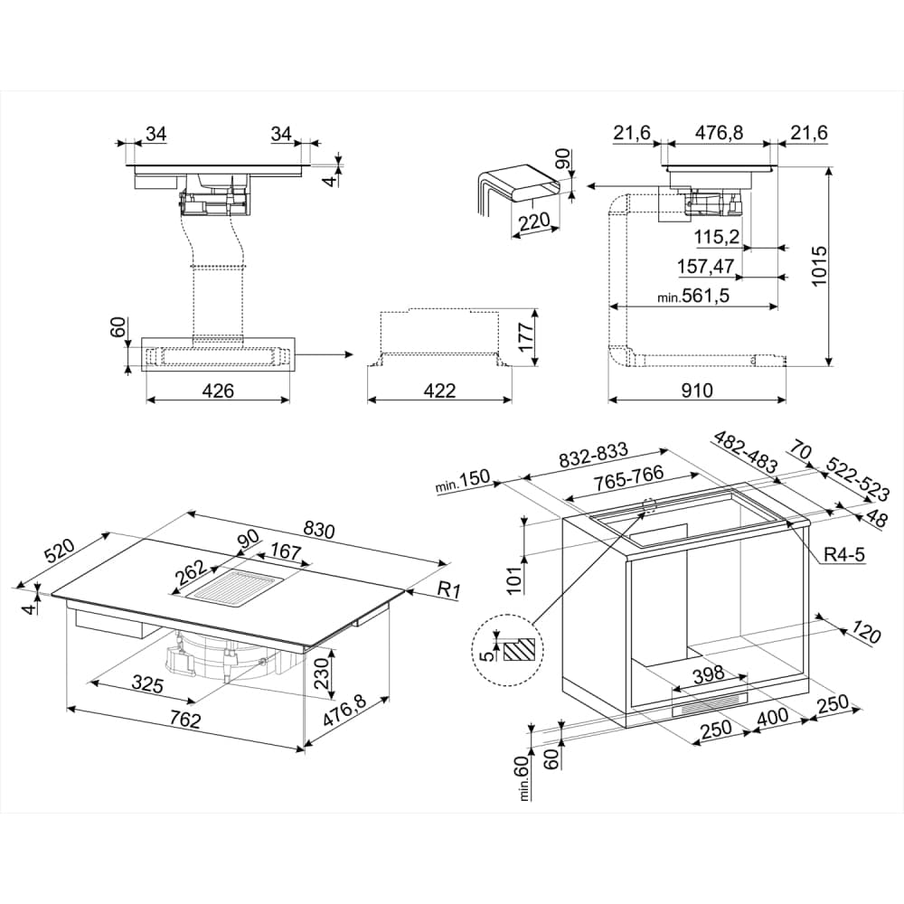 Smeg HOBD682D1 83cm Air Venting Induction Hob – BLACK