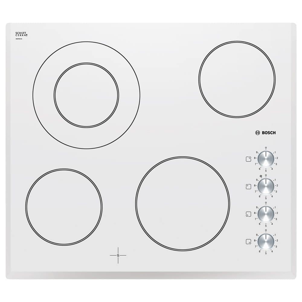 This superb 60cm wide ceramic hob from Bosch boasts four heat zones. Finished in white glass it will look great in any kitchen.