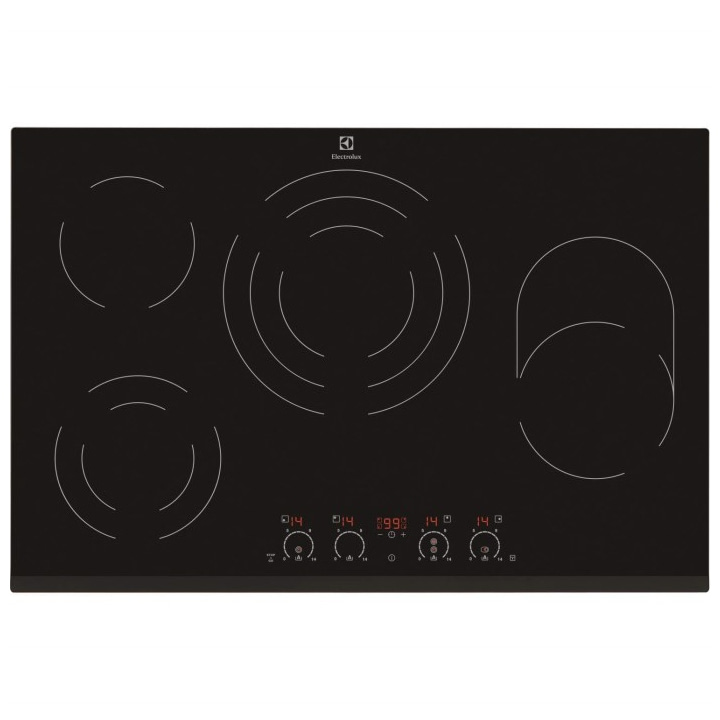This superb 78cm wide ceramic hob from Electrolux boasts four heat zones, including a triple zone, a double zone and an extendable zone. Finished in black glass with a bevelled front it will look great in any kitchen.