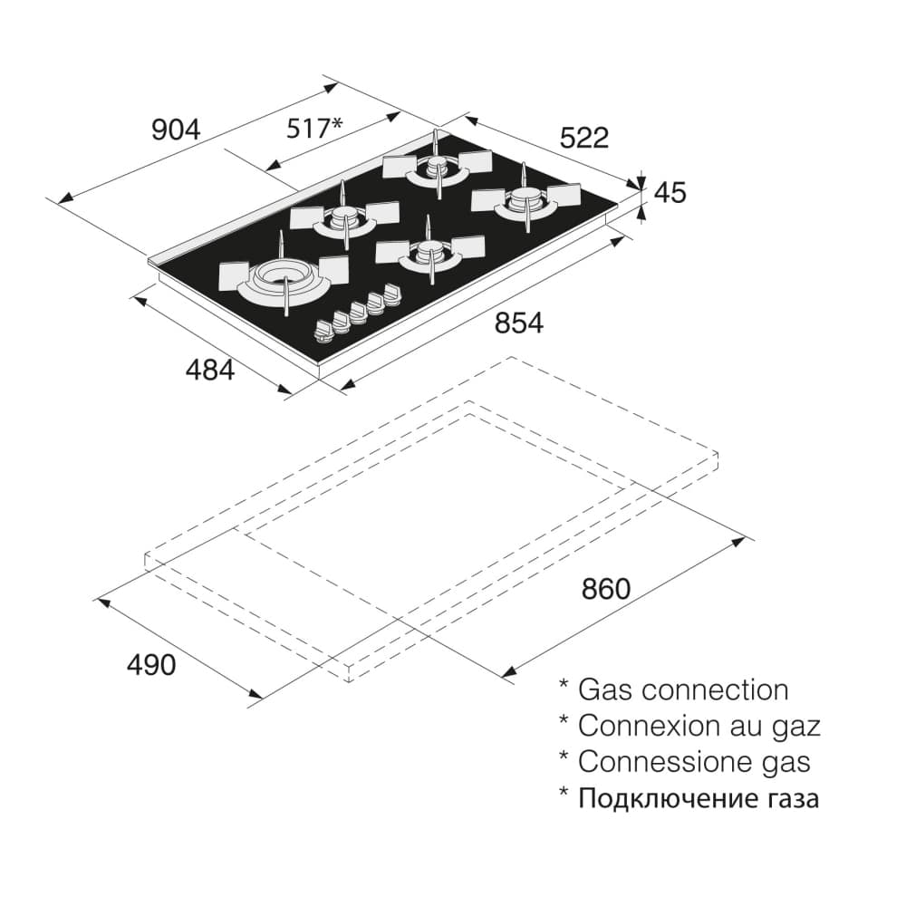 Asko HG1935AB 90cm 5 Burner Gas On Glass Hob – BLACK