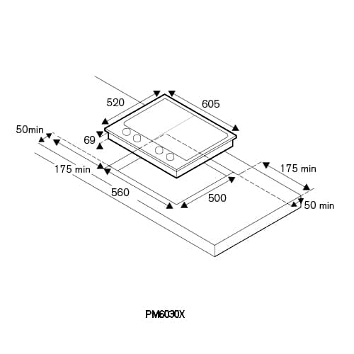 Bertazzoni PM6030X 60cm Professional Series 3 Burner Gas Hob – STAINLESS STEEL