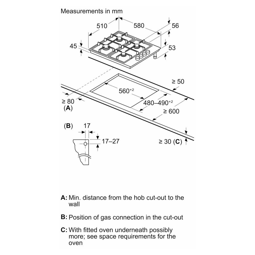 Bosch PBP6B5K60 60cm Series 2 4 Burner Gas Hob – STAINLESS STEEL