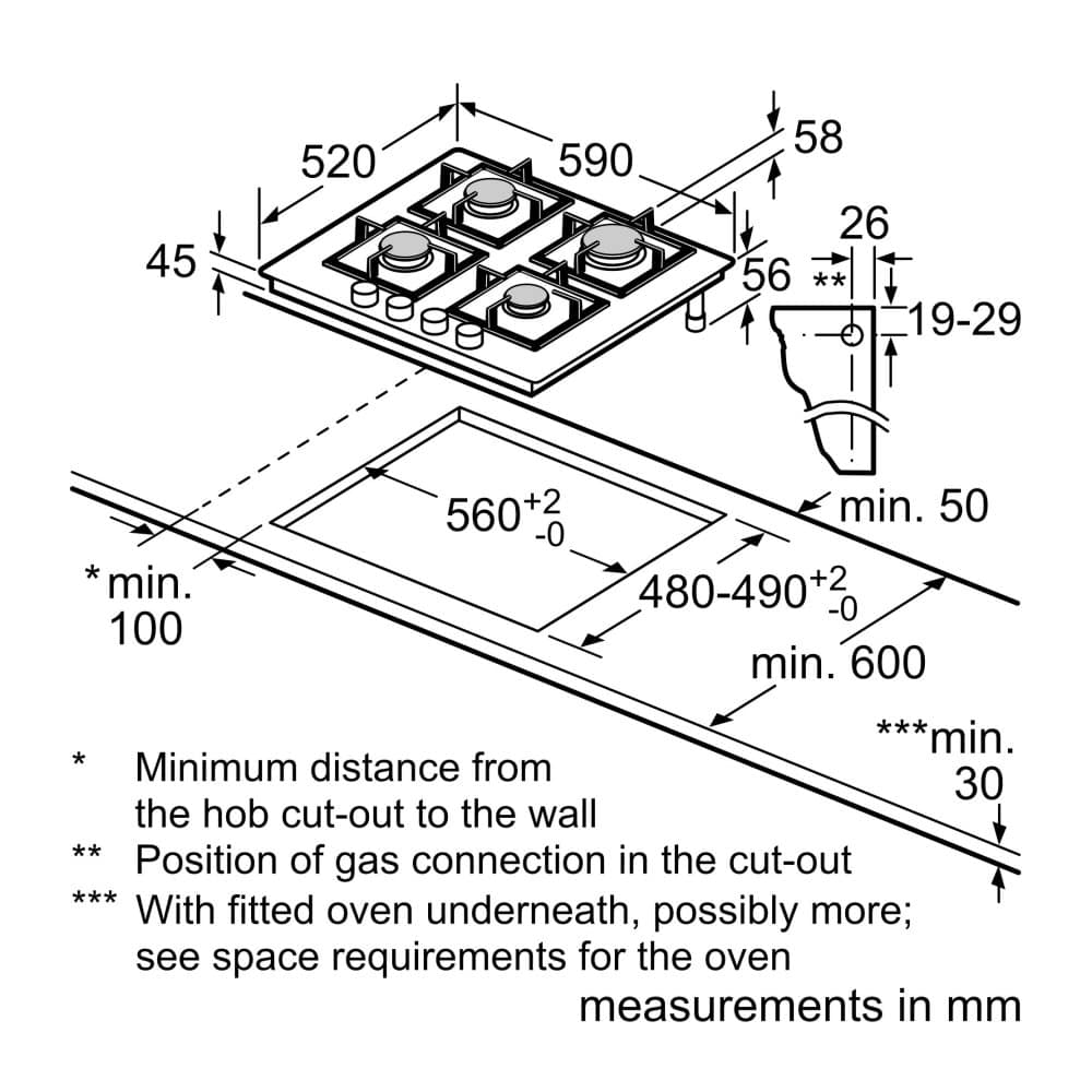 Bosch PNP6B6K40 60cm Series 4 4 Burner Gas On Glass Hob – BLACK
