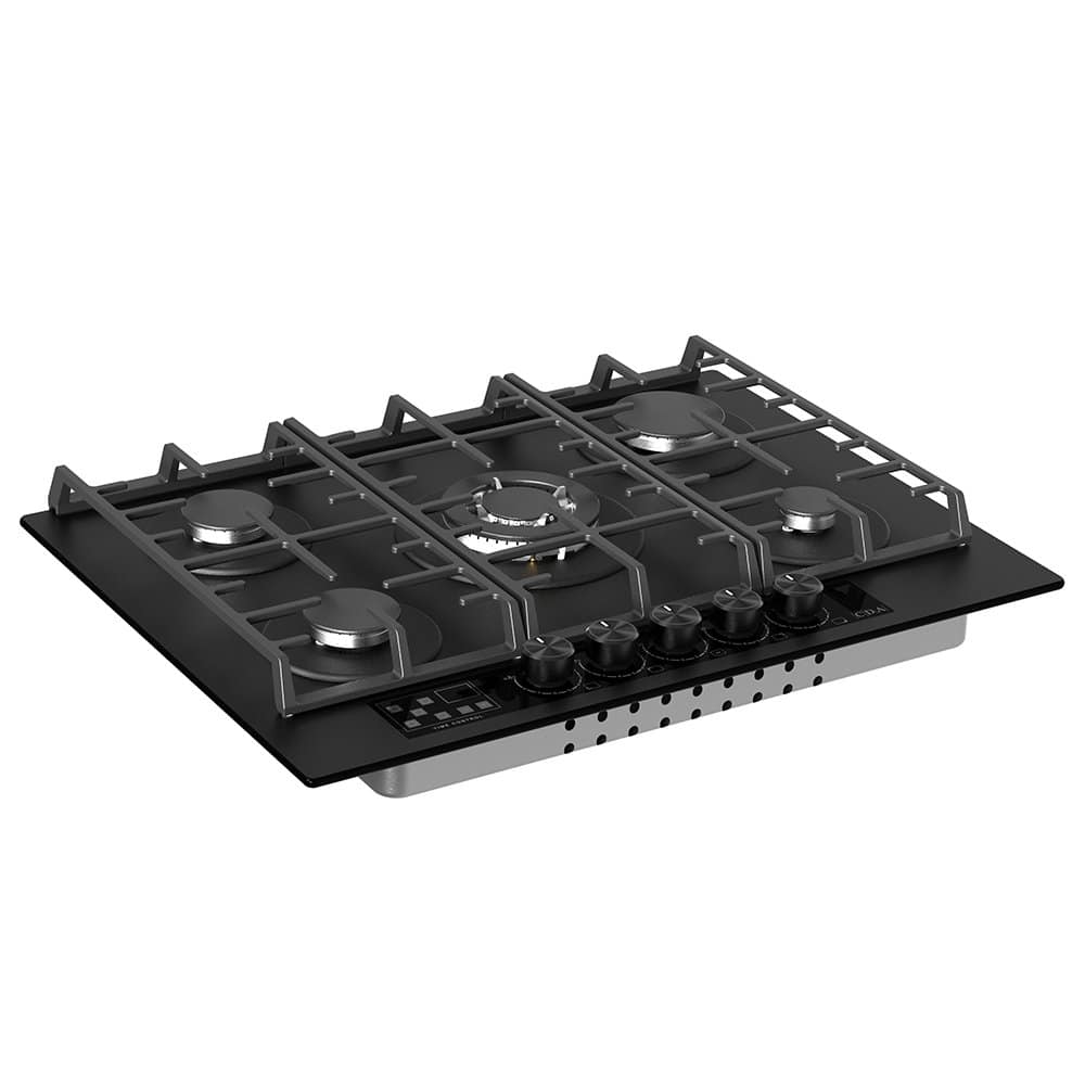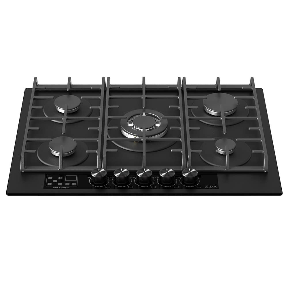 CDA HVG731MB 70cm 5 Burner Gas On Glass Hob – BLACK