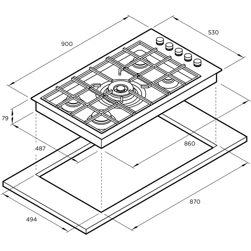 Dimensions: w900 x d530 x h76mm