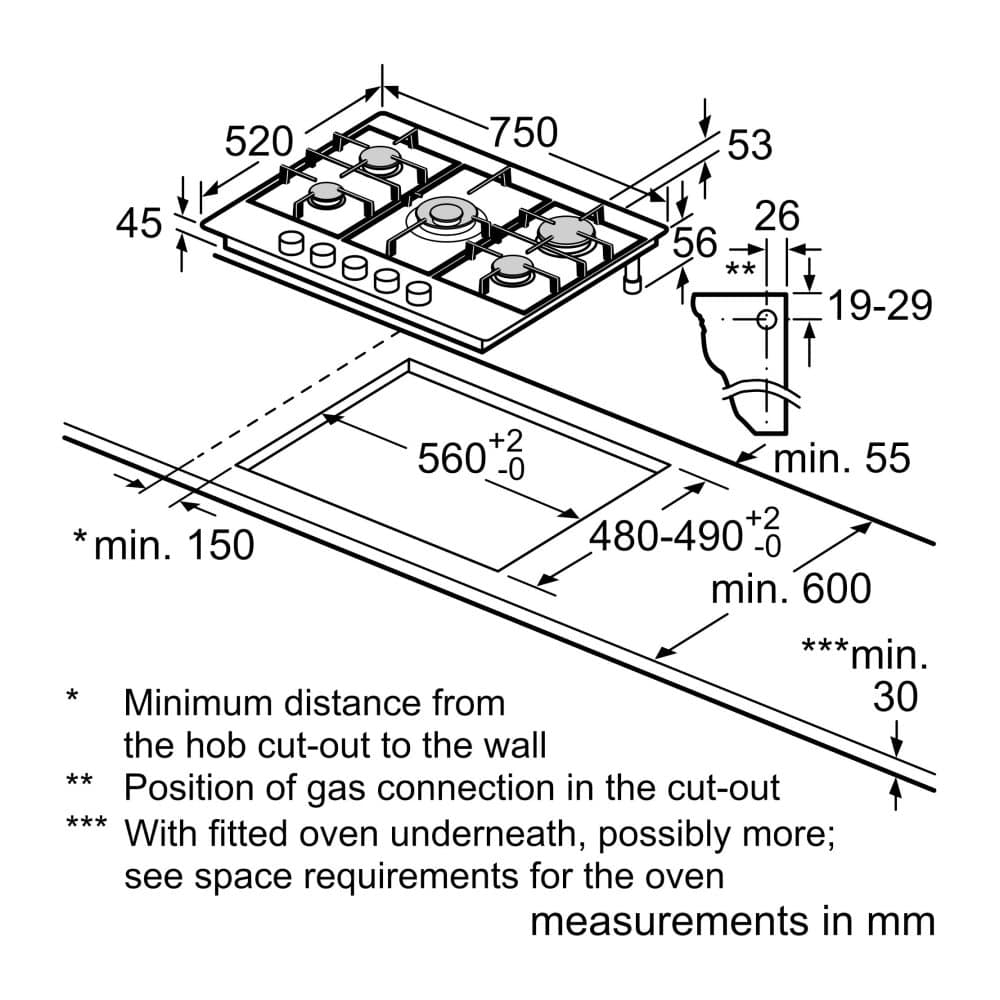 Neff T27GKQ8N0 75cm N50 5 Burner Gas Hob – STAINLESS STEEL
