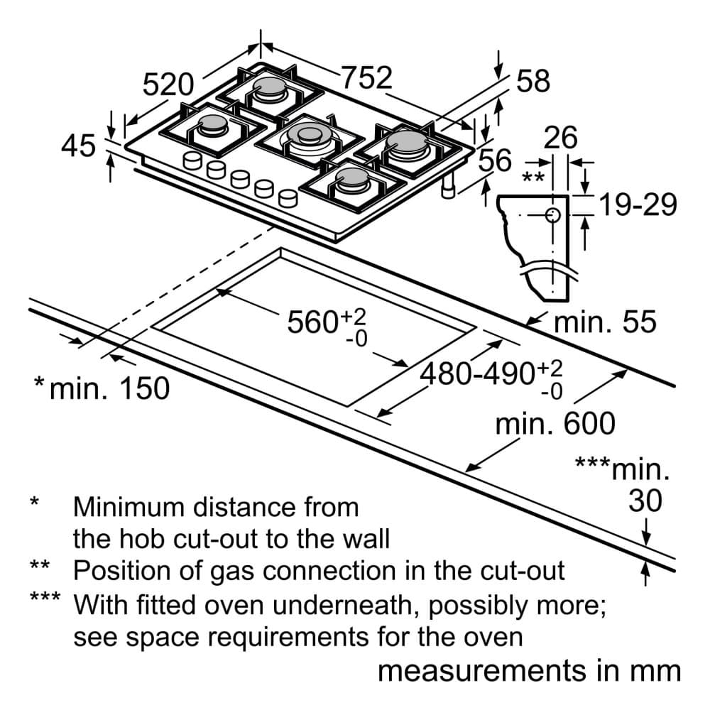 Neff T27PIQ4S0 75cm N70 5 Burner Gas On Glass Hob – BLACK