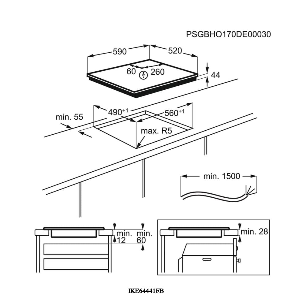 AEG IKE64441FB 60cm Series 6000 4 Zone Hob2Hood MaxiSense Induction Hob – BLACK