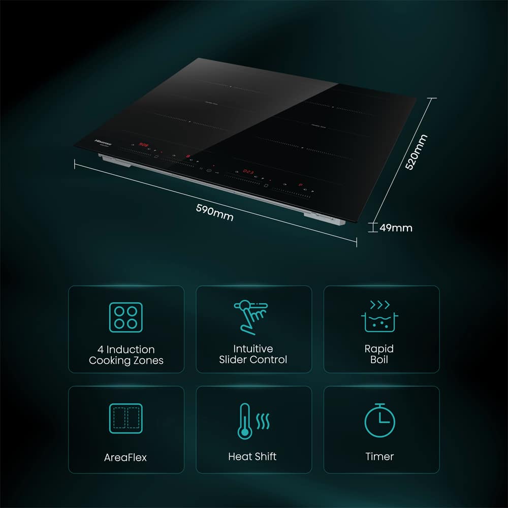 Hisense HI6442BSCE 60cm 4 Zone Area Flex Induction Hob – BLACK