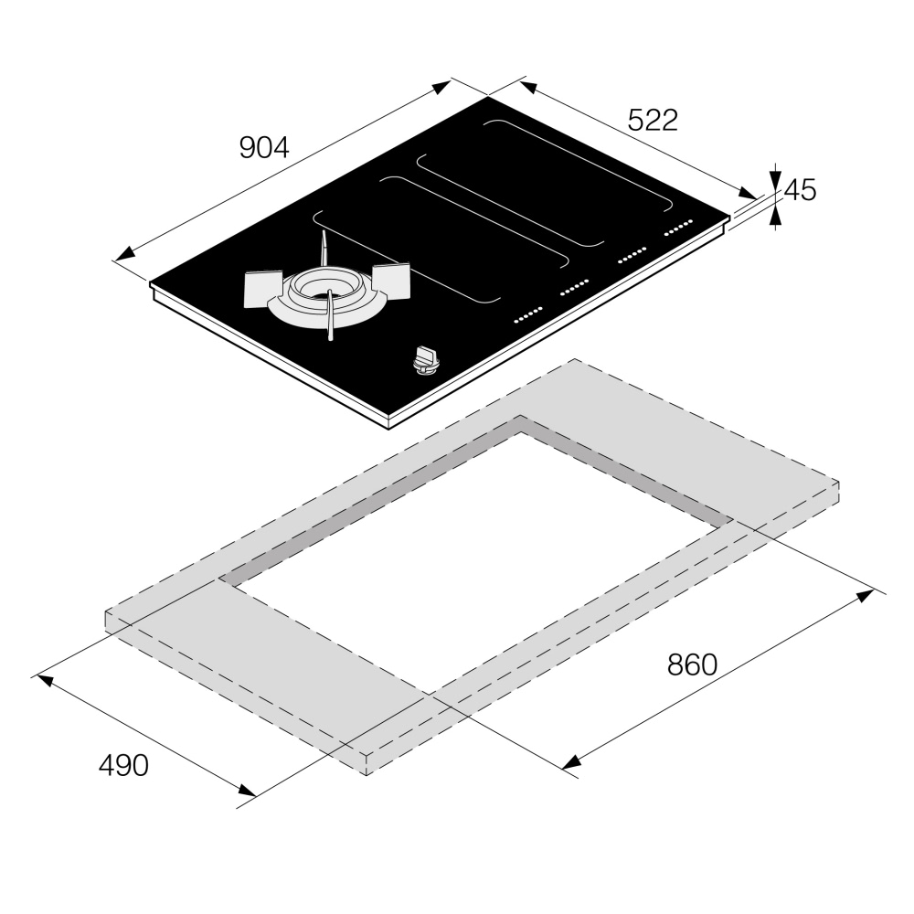 90cm Mixed Induction And Gas Hob