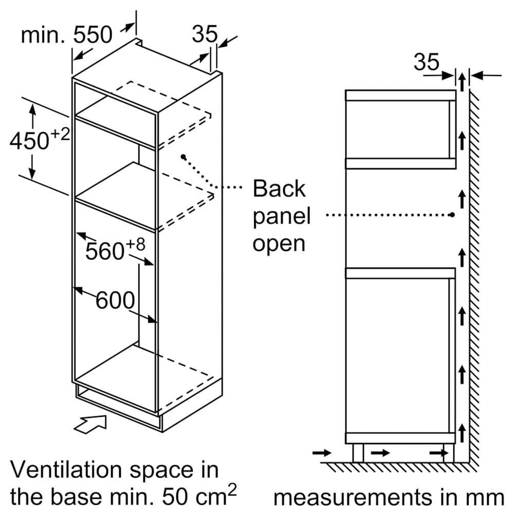 Welcome a new addition to your kitchen with this Neff compact oven with microwave! Finished in stainless steel with a black glass front, this microwave oven offers both style and effective cooking. Combining your oven with a microwave is a great way to save on space in your kitchen. Unlike a traditional microwave, compact microwave ovens do not feature a spinning plate. Instead, HotAir provides an even distribution of heat throughout the 44 litre capacity oven cavity, ensuring excellent results every time. The oven and microwave functions can also be used together, vastly reducing cook time while still making sure your meals are cooked thoroughly. With power levels ranging from 90W to 900W, this microwave is versatile and ready to take on any recipe. Featuring a straightforward LCD display and simple controls, this microwave oven is the perfect fit for foodies everywhere! Please note that this microwave will not fit in a wall unit.