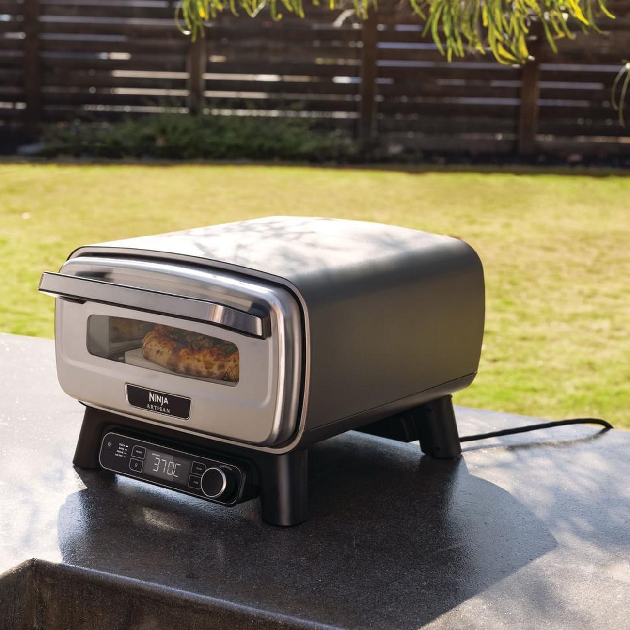 Take on the great British summer weather with this versatile outdoor pizza oven and air fryer! Finished in a minimalist grey, this Ninja oven offers maximum functionality, allowing you to cook pizza, bake, air fry and prove dough. Better yet, the MO201UK has 5 pizza settings, allowing you to satisfy any craving in a matter of minutes! With an interior light and an adjustable temperature of up to 370°C, enjoy full control over your delicious pizza creations with this fantastic Ninja outdoor oven.