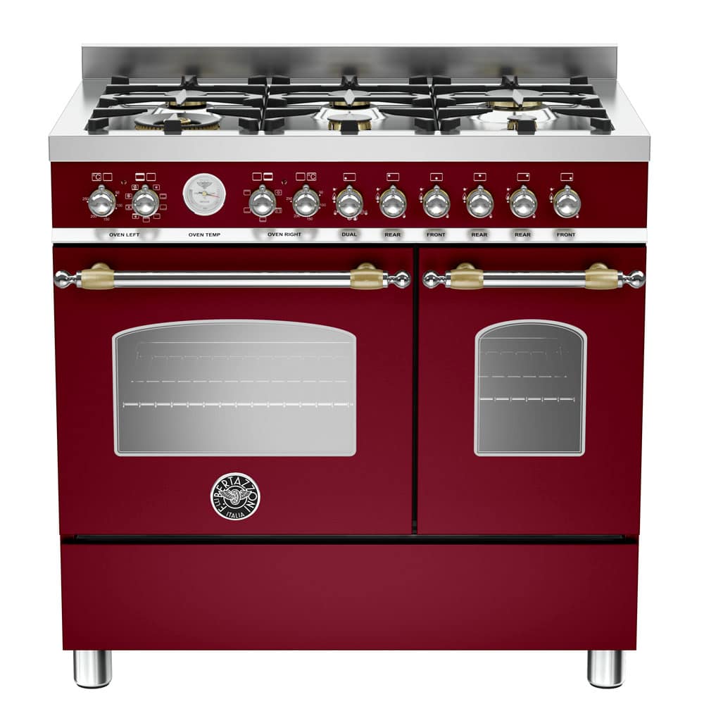 Bertazzoni HER90-6-MFE-D-VIT 90cm Heritage Dual Fuel Range Cooker – BURGUNDY