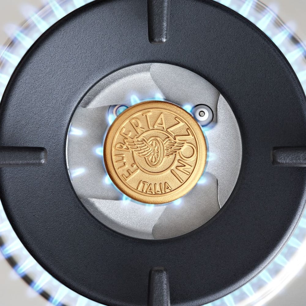 This fabulous dual fuel range cooker from Bertazzoni is full of style and flair. Offering all the space you could ever need with 123 litres of oven capacity split between two ovens, the main oven has 9 cooking functions including a very Italian, pizza cooking option! The second oven has 4 cooking functions, and both ovens contain a grill. A storage area utilises the space below the ovens for all your cooking paraphernalia. Triple glazed doors keep the heat in and the exterior cool. A 6 burner gas hob rounds off this brilliant piece of culinary excellence. Bertazzoni have managed to create a range cooker that is solid and functional and yet elegant and chic at the same time – genius!