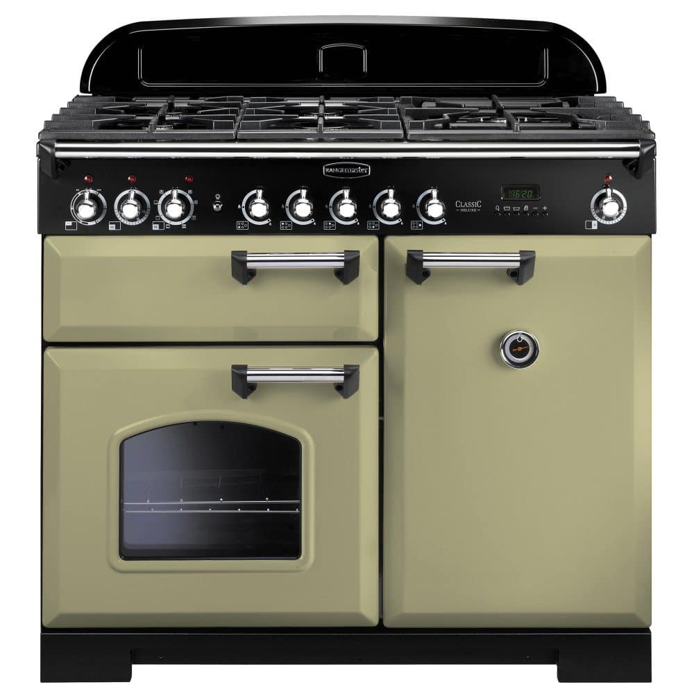 Rangemaster CDL100DFFOG/C Classic Deluxe 100cm Dual Fuel Range Cooker 100910 – OLIVE GREEN