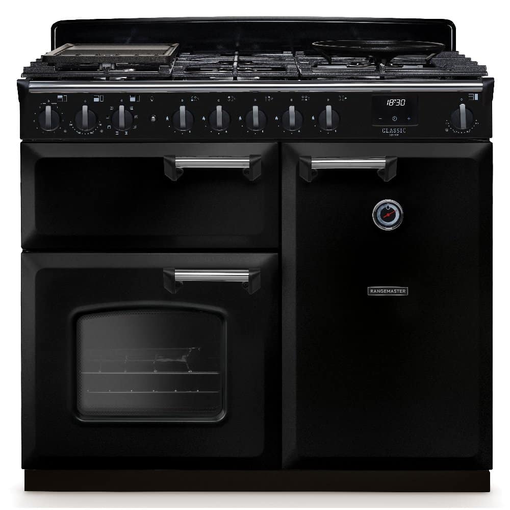 Rangemaster CLDL100DFPGBL/CM1 Classic Deluxe 100cm Dual Fuel Range Cooker Chrome Trim 14638 – BLACK