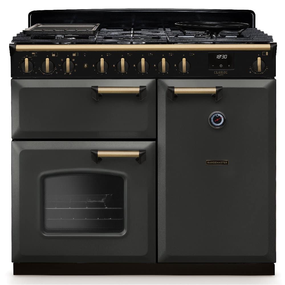 Classic Deluxe 100cm dual fuel range cooker in slate with antique brass trim