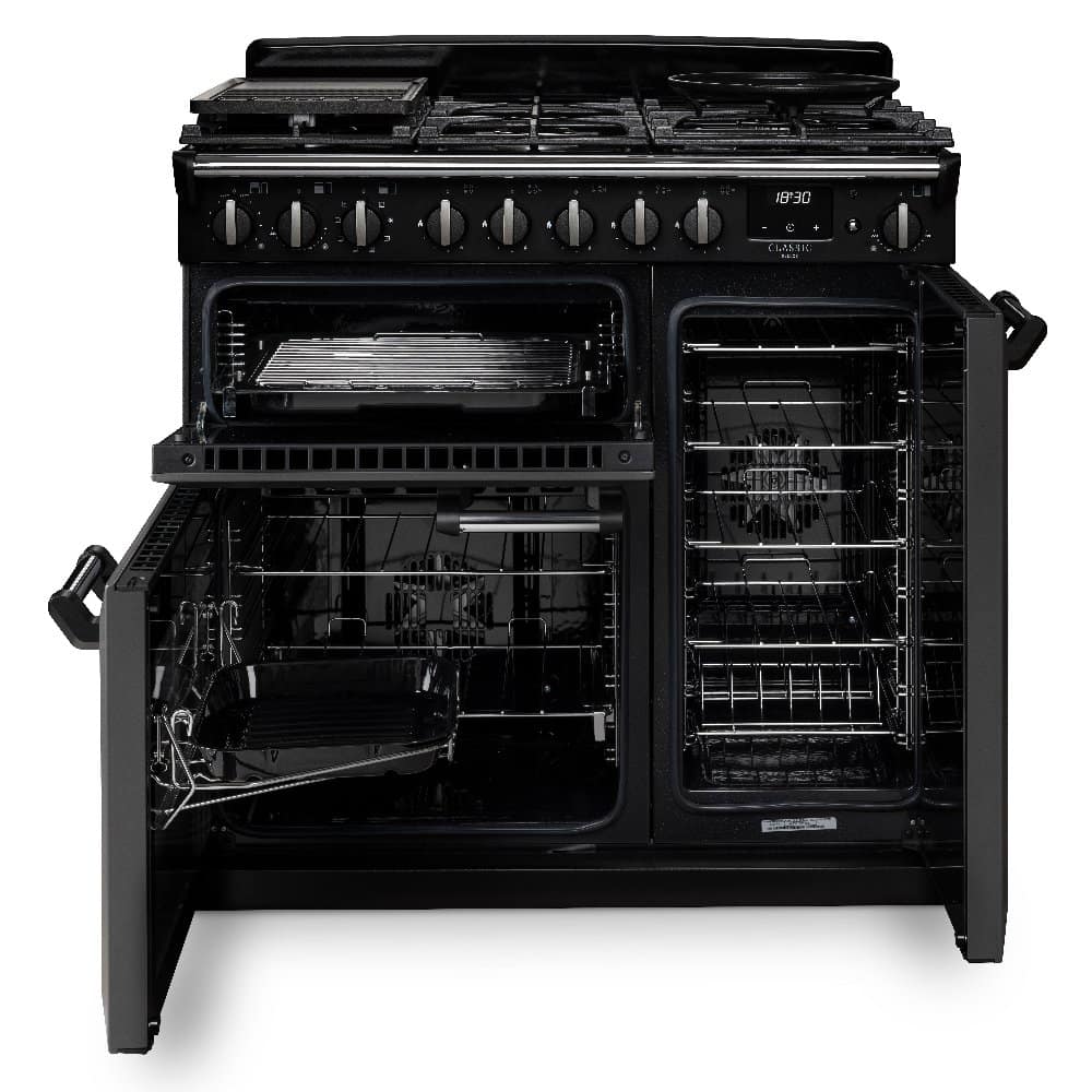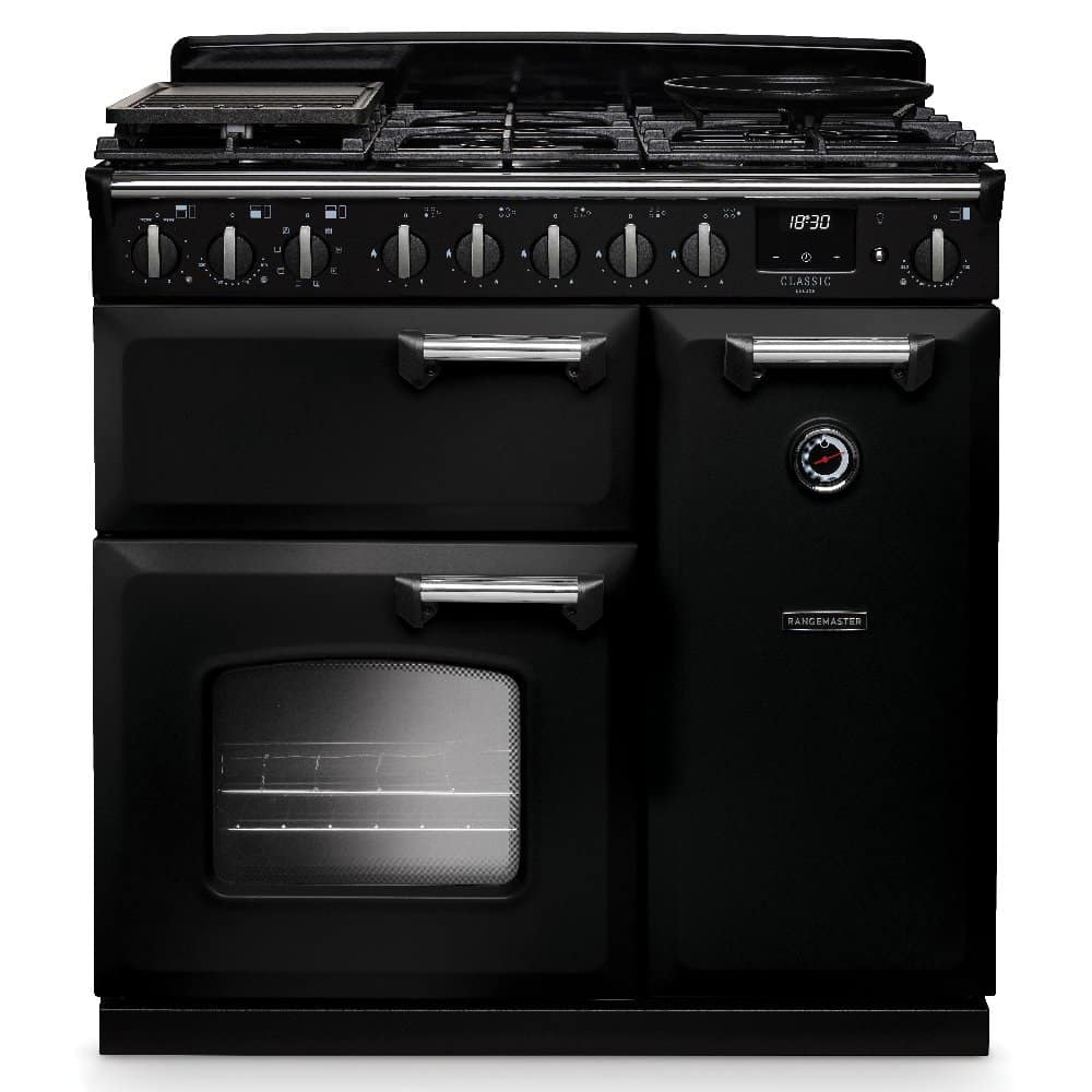 Rangemaster CLDL90DFPGBL/CM1 Classic Deluxe 90cm Dual Fuel Range Cooker Chrome Trim 14536 – BLACK