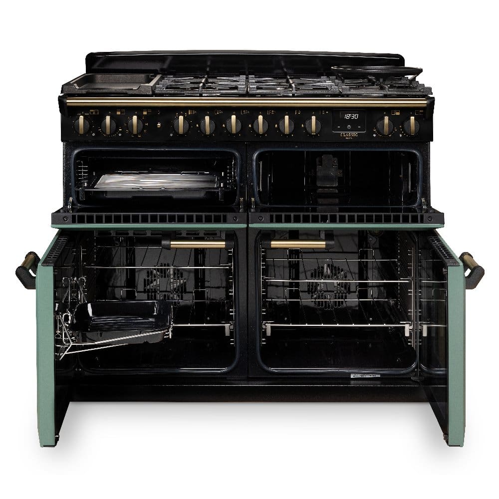 The superb Rangemaster CLDLB110DFPSLT/AB1 Classic Deluxe range cooker features a main multifunction oven, an electric fan oven, a smooth action glide-out grill, a dedicated slow cook oven and a hob top with 5 gas burners and a ceramic multi zone. Plus, with great added extras like the handy rack, you’ll find roasting meat a breeze. The rack is located on the inside of the oven door, making it easy to check and baste your roast to perfection. Finished in slate with a chic country feel this model is bound to make a statement in your kitchen.