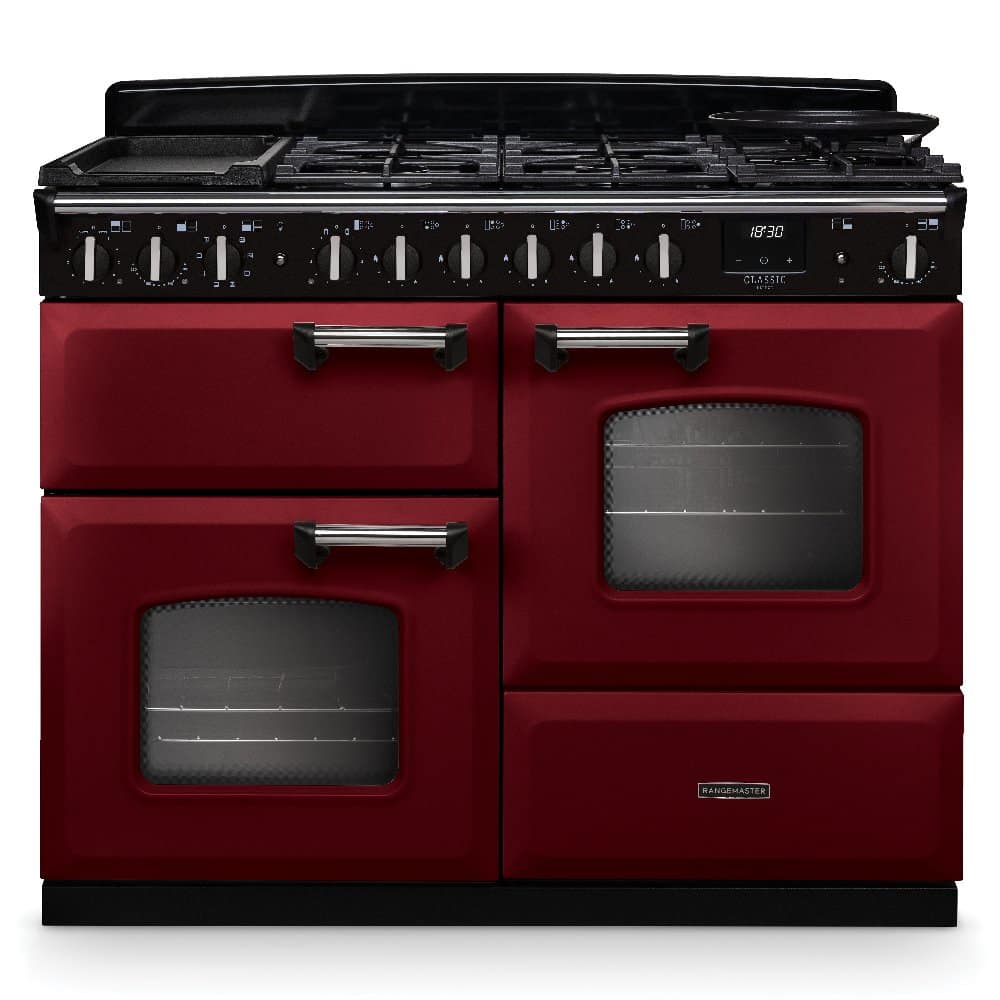 Rangemaster CLDLO110DFPBOR/CM1 Classic Deluxe OC 110cm Dual Fuel Range Cooker Chrome Trim 14713 – BORDEAUX