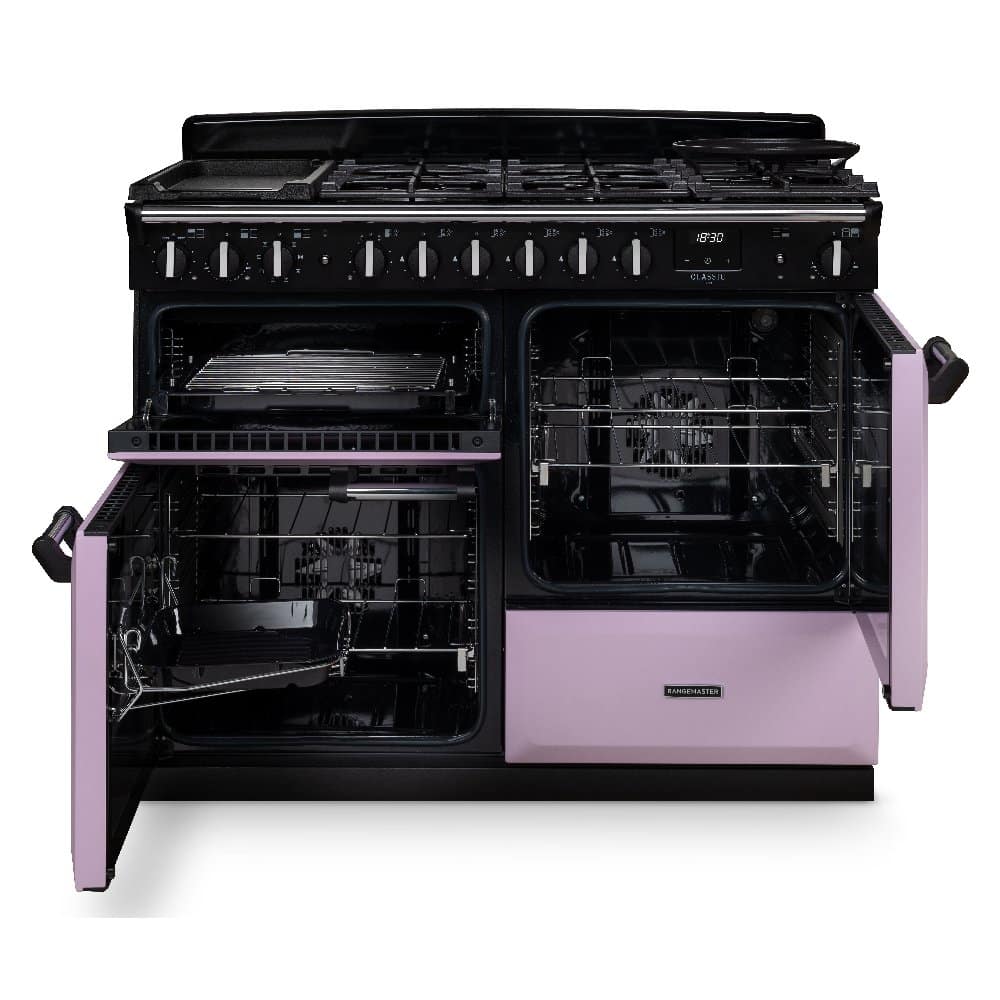 The superb Rangemaster CLDLO110DFPBOR/CM1 Classic Deluxe range cooker features a main multifunction oven, an electric fan oven, a smooth action glide-out grill, a dedicated bread proving drawer and a hob top with 5 gas burners and a ceramic multi zone. Plus, with great added extras like the handy rack, you’ll find roasting meat a breeze. The rack is located on the inside of the oven door, making it easy to check and baste your roast to perfection. Finished in Bordeaux with a chic country feel this model is bound to make a statement in your kitchen.