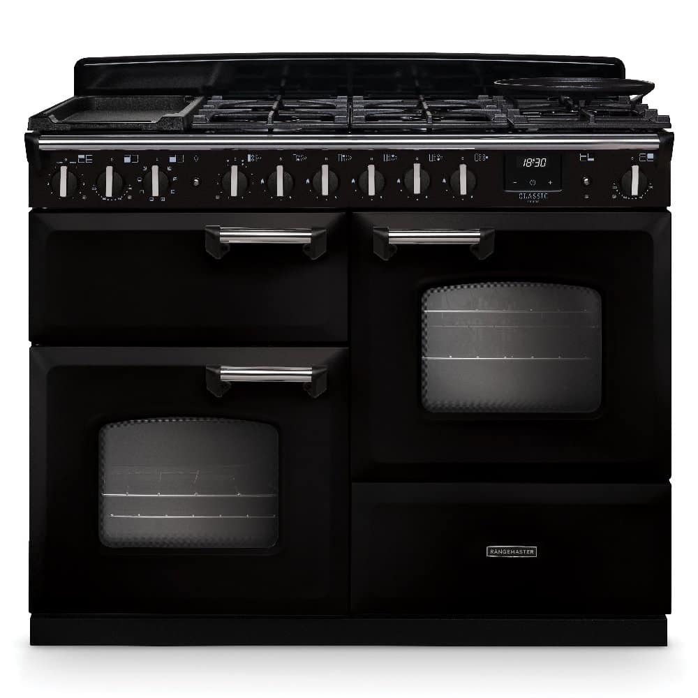 Rangemaster CLDLO110DFPGBL/CM1 Classic Deluxe OC 110cm Dual Fuel Range Cooker Chrome Trim 14706 – BLACK