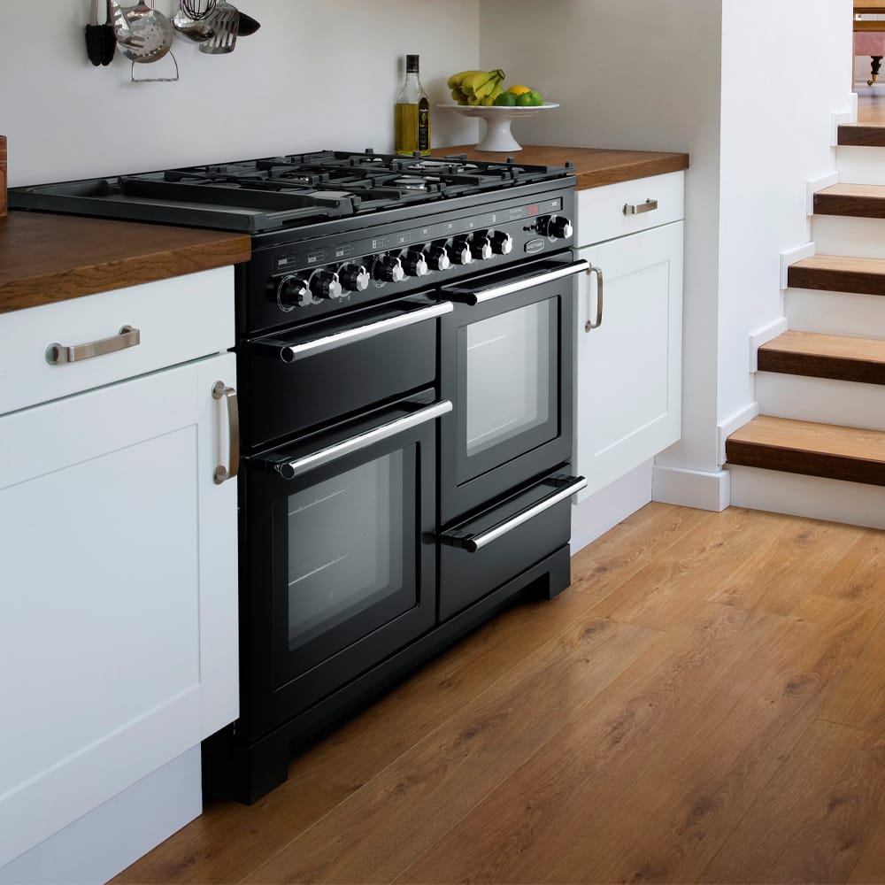 Sleek style and great features really make this 110cm wide range cooker from Rangemaster stand out. There’s plenty of space with the multifunction main oven, secondary electric oven and glide out grill. And plenty of flexibility too! The five burner gas hob with wok burner adds great cooking options and character. Finished in modern slate with chrome trim this cooker looks brilliant as well. It is covered with a two year warranty as standard and has an A/A energy rating for extra peace of mind.