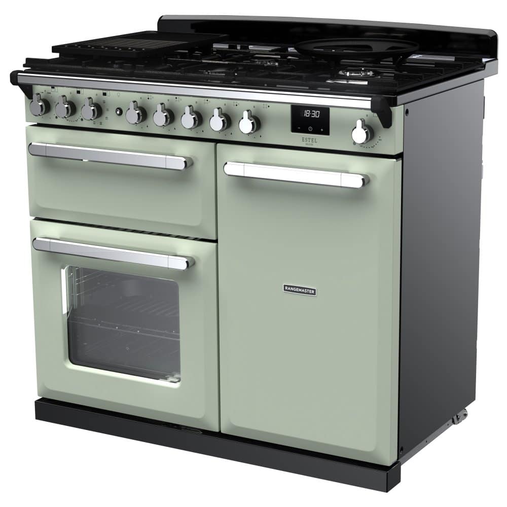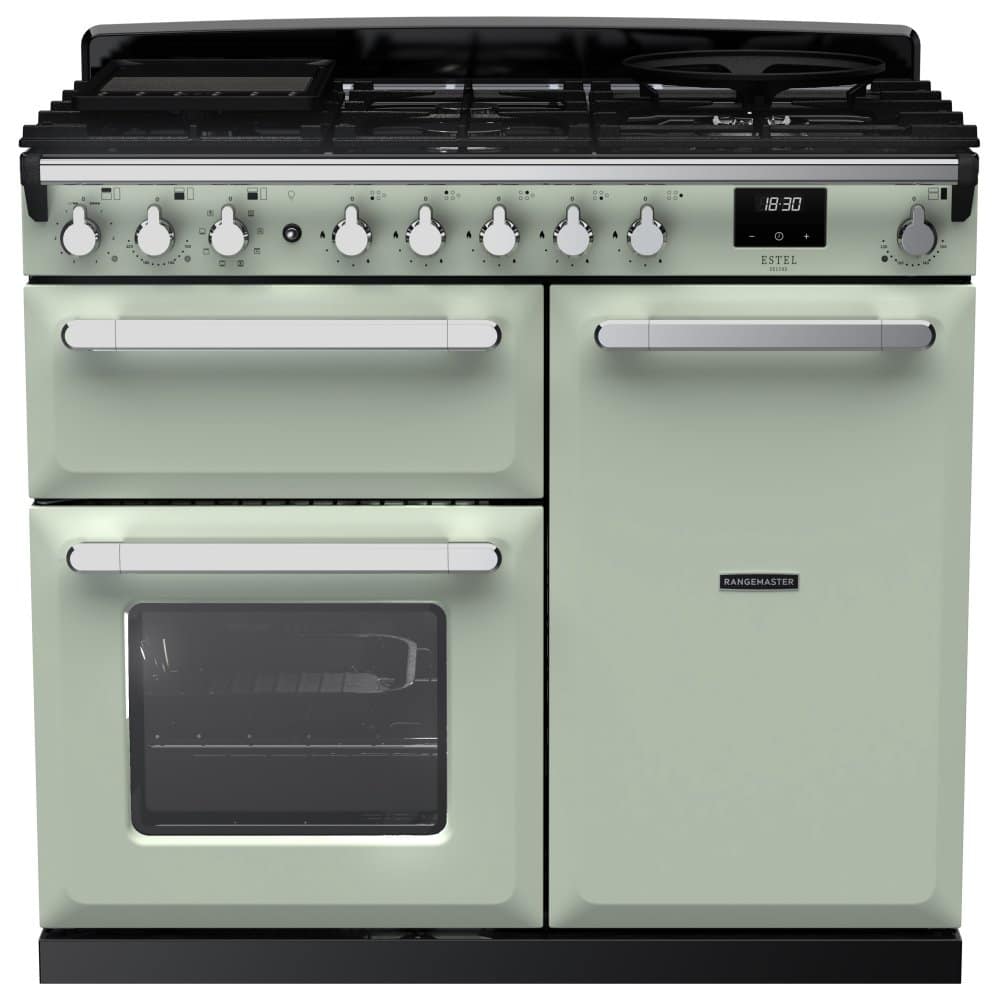 Rangemaster ESDL100DFPMNT/CM1 Estel Deluxe 100cm Dual Fuel Range Cooker With Chrome Trim 15085 – MINT