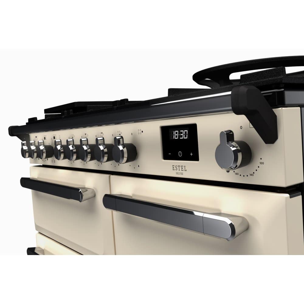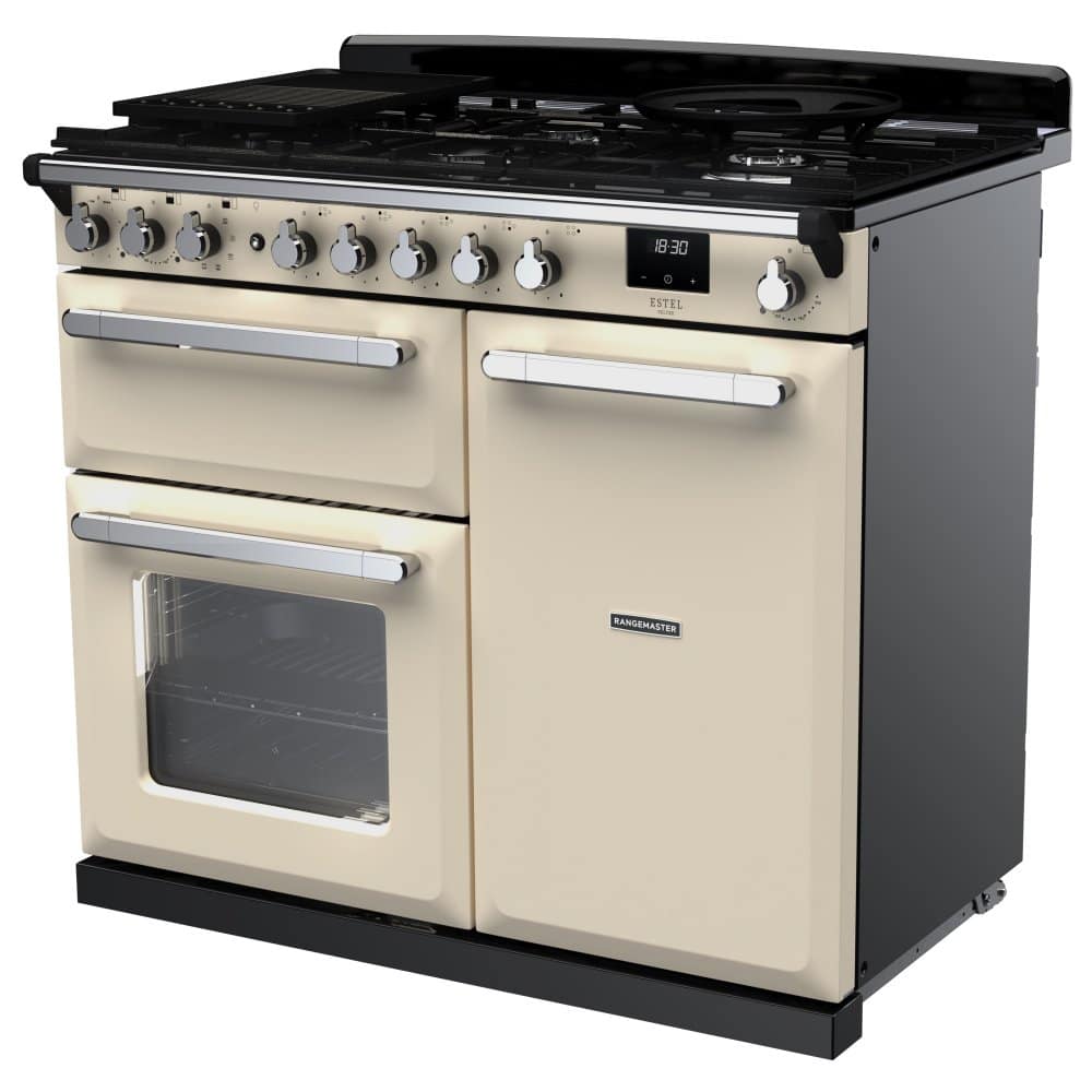 Rangemaster ESDL100DFPPCR/CM1 Estel Deluxe 100cm Dual Fuel Range Cooker With Chrome Trim 15080 – PALE CREAM