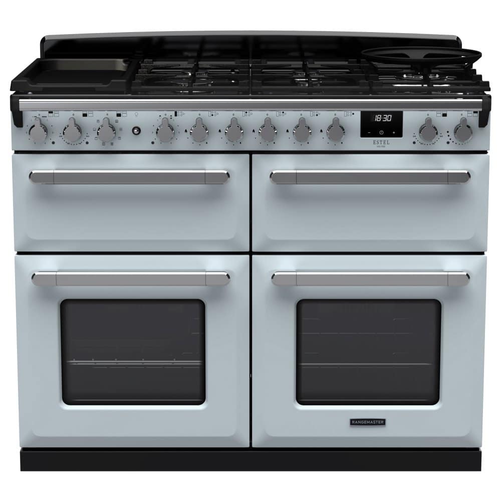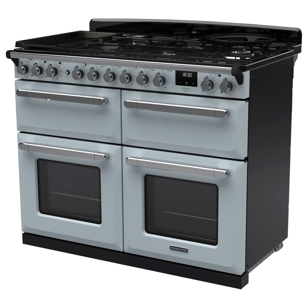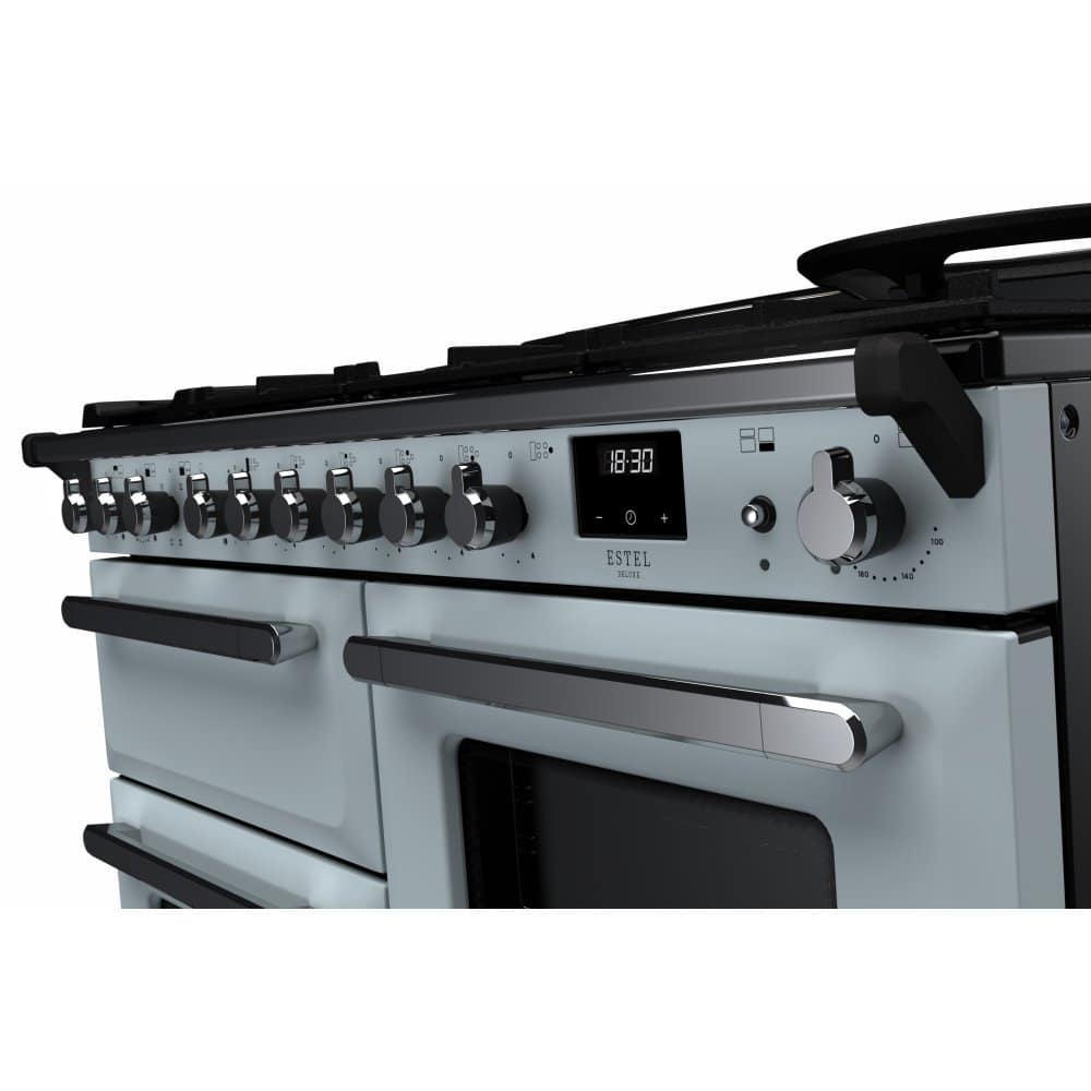 Rangemaster ESDLB110DFPMSB/CM1 Estel Deluxe BC 110cm Dual Fuel Range Cooker With Chrome Trim 15253 – MISTY BLUE