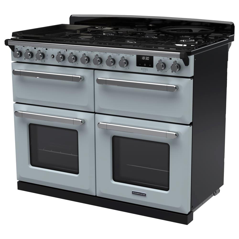 Rangemaster ESDLO110DFPMSB/CM1 Estel Deluxe OC 110cm Dual Fuel Range Cooker With Chrome Trim 15151 – MISTY BLUE