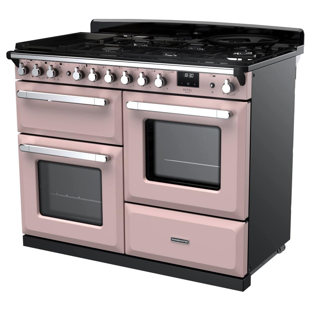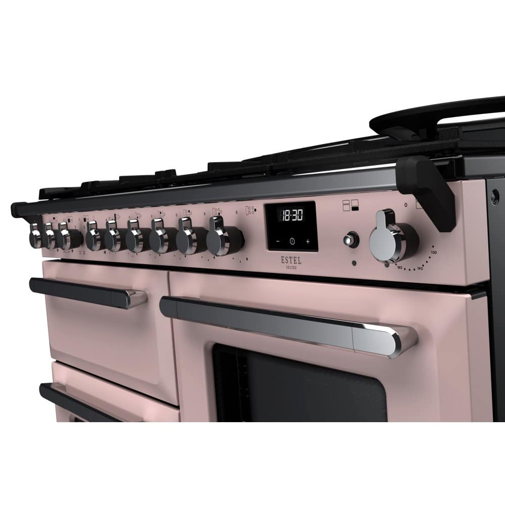 Rangemaster ESDLO110DFPPPK/CM1 Estel Deluxe OC 110cm Dual Fuel Range Cooker With Chrome Trim 15152 – PALE PINK