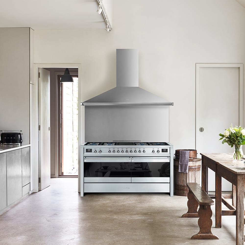 Smeg’s ethos is to design products which take centre stage in the heart of the home and are truly iconic. They have well and truly delivered with this stunning dual fuel range cooker. Boasting 160 litres of gross capacity split between the two ovens, cooking has never been so enjoyable. The main oven offers you 8 cooking functions and features a grill. The second oven has 8 cooking functions, a grill and a pizza cooking option. 7 gas burners including a fish burner and an electric griddle complete the top of the cooker. A brilliant storage drawer is the finishing touch to this piece of perfection!