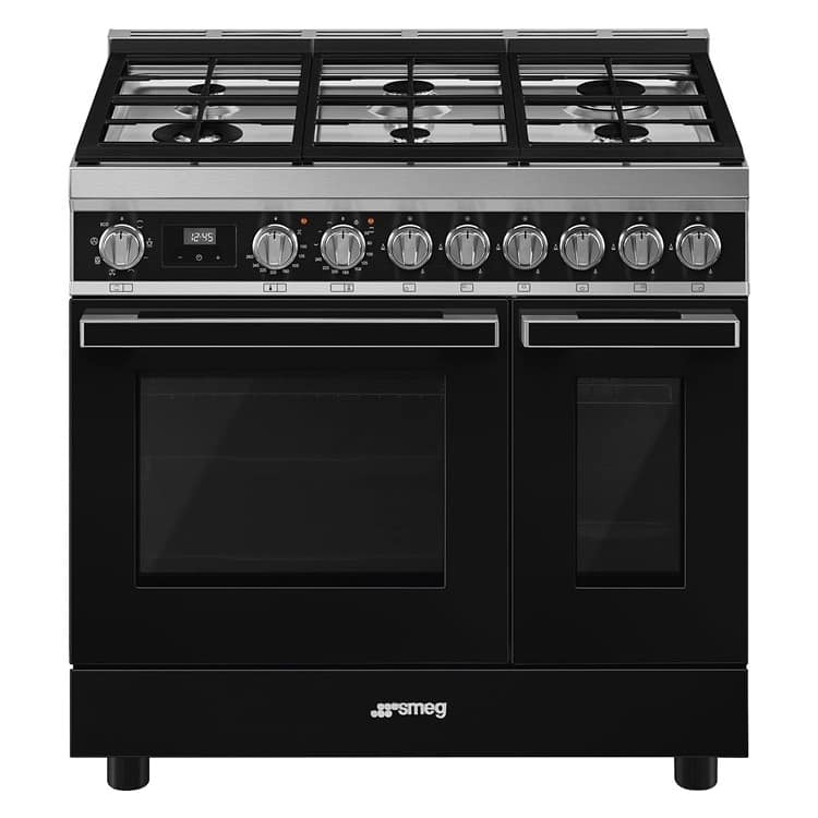 Smeg CPF92GMBL 90cm Portofino Dual Fuel Twin Oven Range Cooker – BLACK