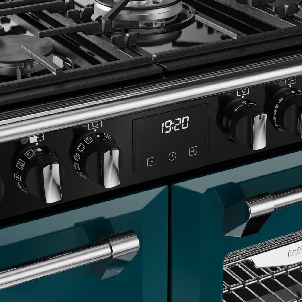 Incredibly flexible, the superb 100cm wide Richmond Deluxe from Stoves is ideal for busy kitchens. The main multifunction oven, second fan oven, dedicated slow cook oven and separate grill compartment offer plenty of space. Topped with a fantastic 7 burner gas hob including the brilliant PowerWok, there’s space for all your pans as well. Finished in deep marine and with a traditionally influenced design, it’s sure to make an amazing focal point.