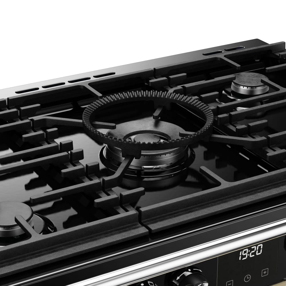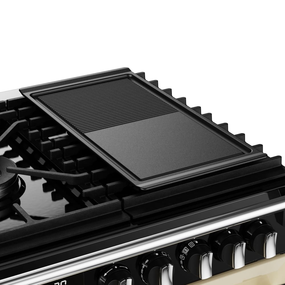 Incredibly flexible, the superb 90cm wide Richmond Deluxe model from Stoves is ideal for busy kitchens. The main multifunction oven, “Titan” secondary electric oven and separate grill compartment offer plenty of space. With the option of using the Pro Flex system you can split the tall oven into two, using exactly what space you need. With Zeus bluetooth technology you can remotely monitor programmes and the brilliant Steam and Infuse cooking system allows you to create healthy, flavourful dishes using the supplied accessories. Topped with a fantastic 5 burner gas hob including the brilliant Power Wok, there’s space for all your pans as well. Finished in cream and with a traditionally influenced design, it’s sure to make an amazing focal point.