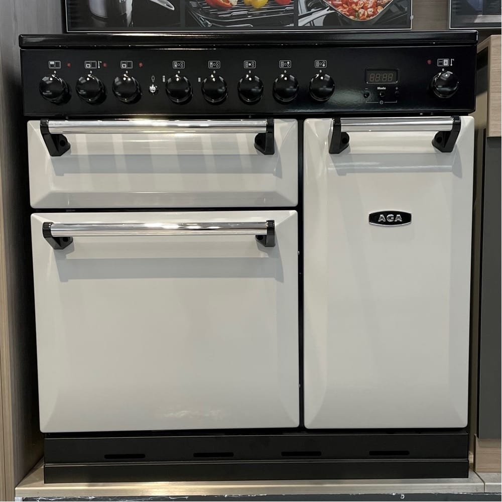This fantastic 90cm wide Masterchef Deluxe induction range cooker from AGA Masterchef is both versatile and beautiful! It features a 79 litre electric multifunction main oven, a 67 litre tall fan oven and a deluxe glide out electric grill. This model has 8 cooking functions in the main oven, as well as catalytic liners that make cleaning up the mess super easy. The induction hob is great for cooking up fun and complex meals. You can even bridge the two left hand zones to create one larger zone, ideal for a griddle or casserole dish. It’s complete in Pearl Ashes, a designer colour that will complement any grey, blue or white kitchen style.